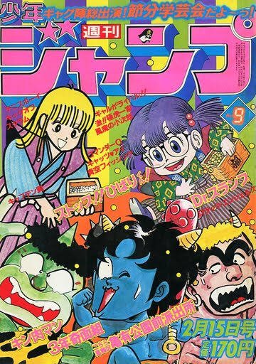 鳥山明が現れたときの衝撃というのは、物心ついた時にはすでに鳥山明がいた世代の方には想像しづらいかもしれないが『Dr.スランプ』の連載がはじまる前週の少年ジャンプ表紙を見れば、当時のジャンプキッズが受けた衝撃をわかっていただけるのではないだろうか。 https://t.co/9r3lPq9JZR