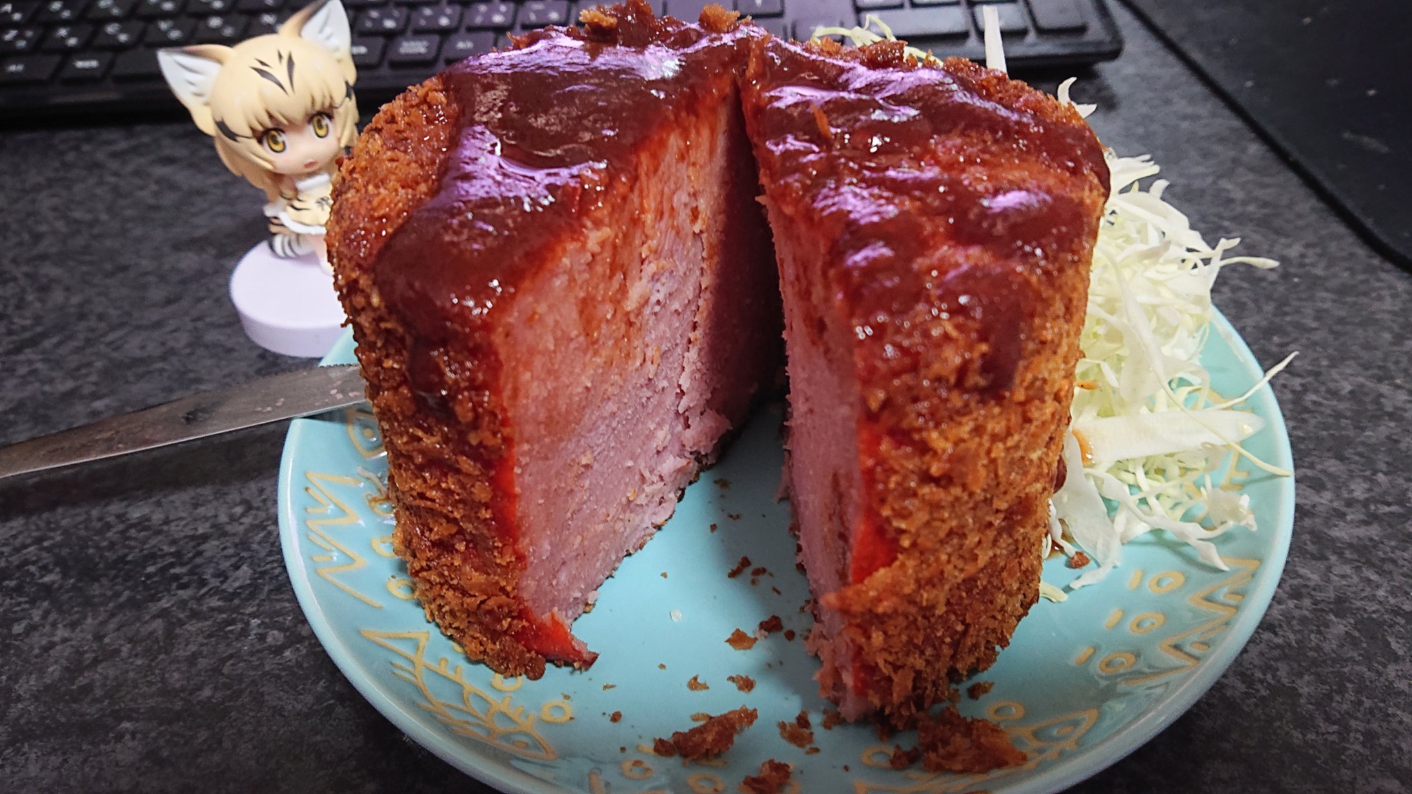 そうか、中身がハムだから分厚くしても火の通りを心配しないで済むのか>巨大ハムカツ