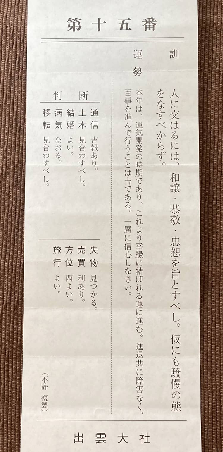@JoyTaniguchi 出雲大社にはおみくじがありますが、吉凶がありません。神様のアドバイスなのです。通信・土木・結婚などの「判断」は非常にクリアです。https://t.co/i7VjLpCOIg https://t.co/ILgGJ5IndB