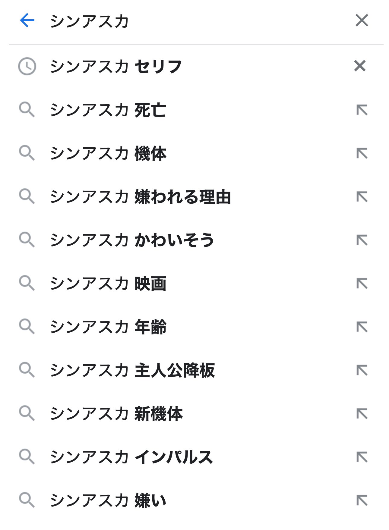 マジで検索かける時に作品名やキャラ名のあとに「嫌い」とか「つまらない」といったマイナスワードが出ないようにして欲しいごくたまに「作品名(曲のタイトル) パクり」もある純粋にその作品,キャラについて調べたいだけなのにめちゃくちゃ不快になる