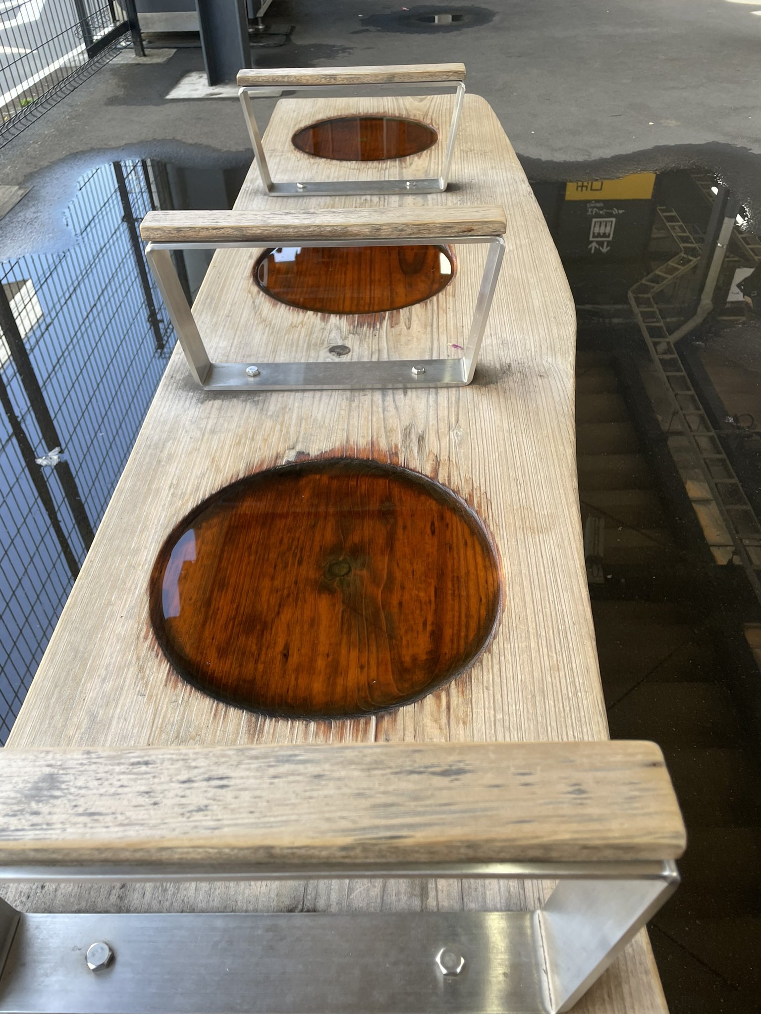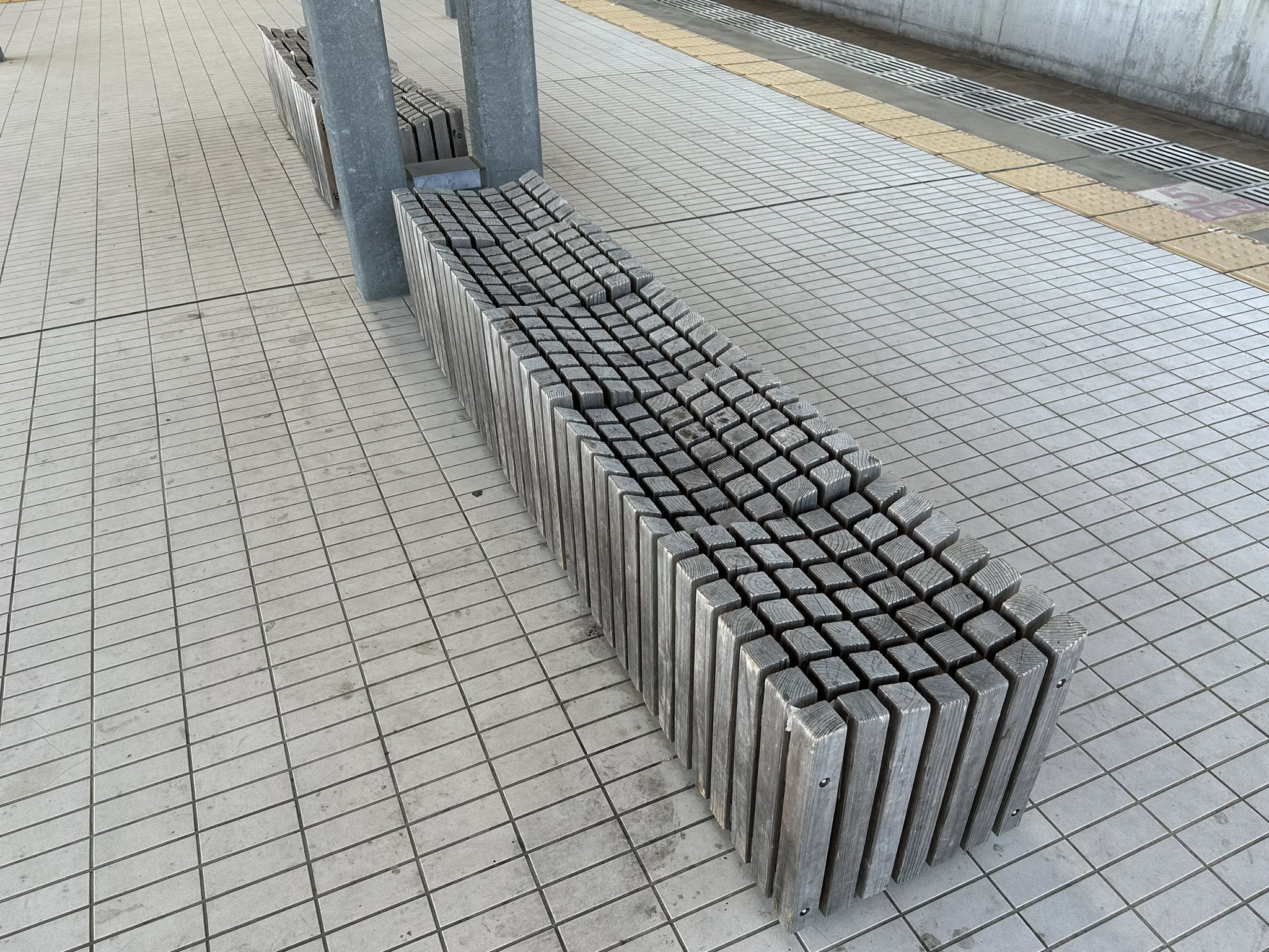 逆にデザインの勝利的な駅のベンチもあるぞい絶対排水させるという固い意思を感じるちなみに座り心地は結構いいどっち向きでも普通に座れる https://t.co/r5UTUguTWI