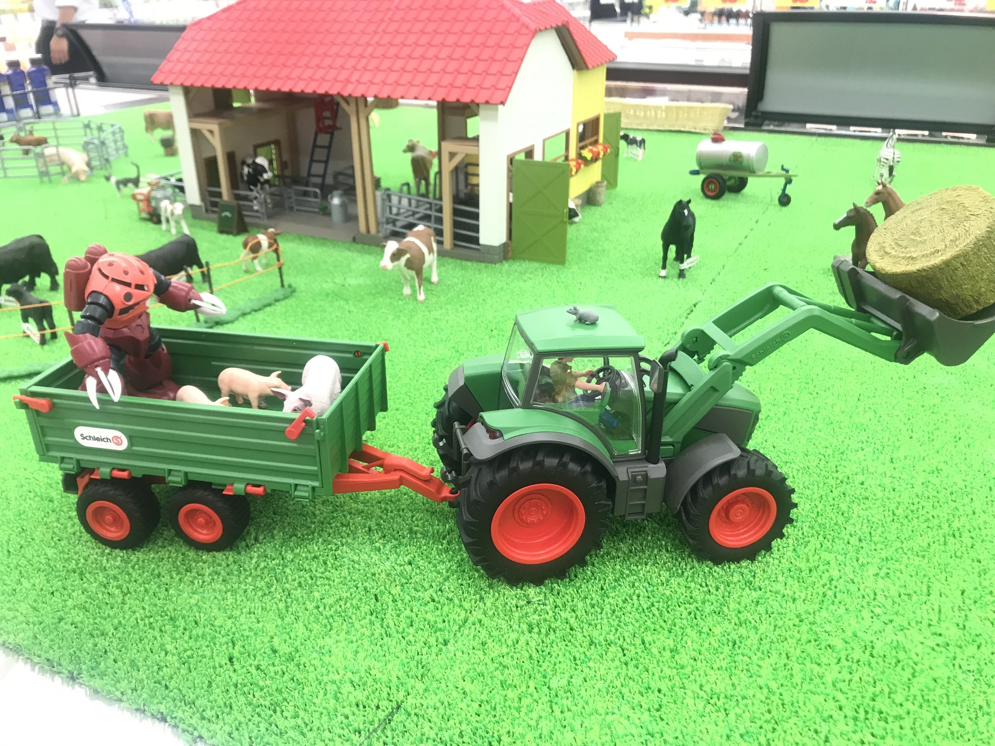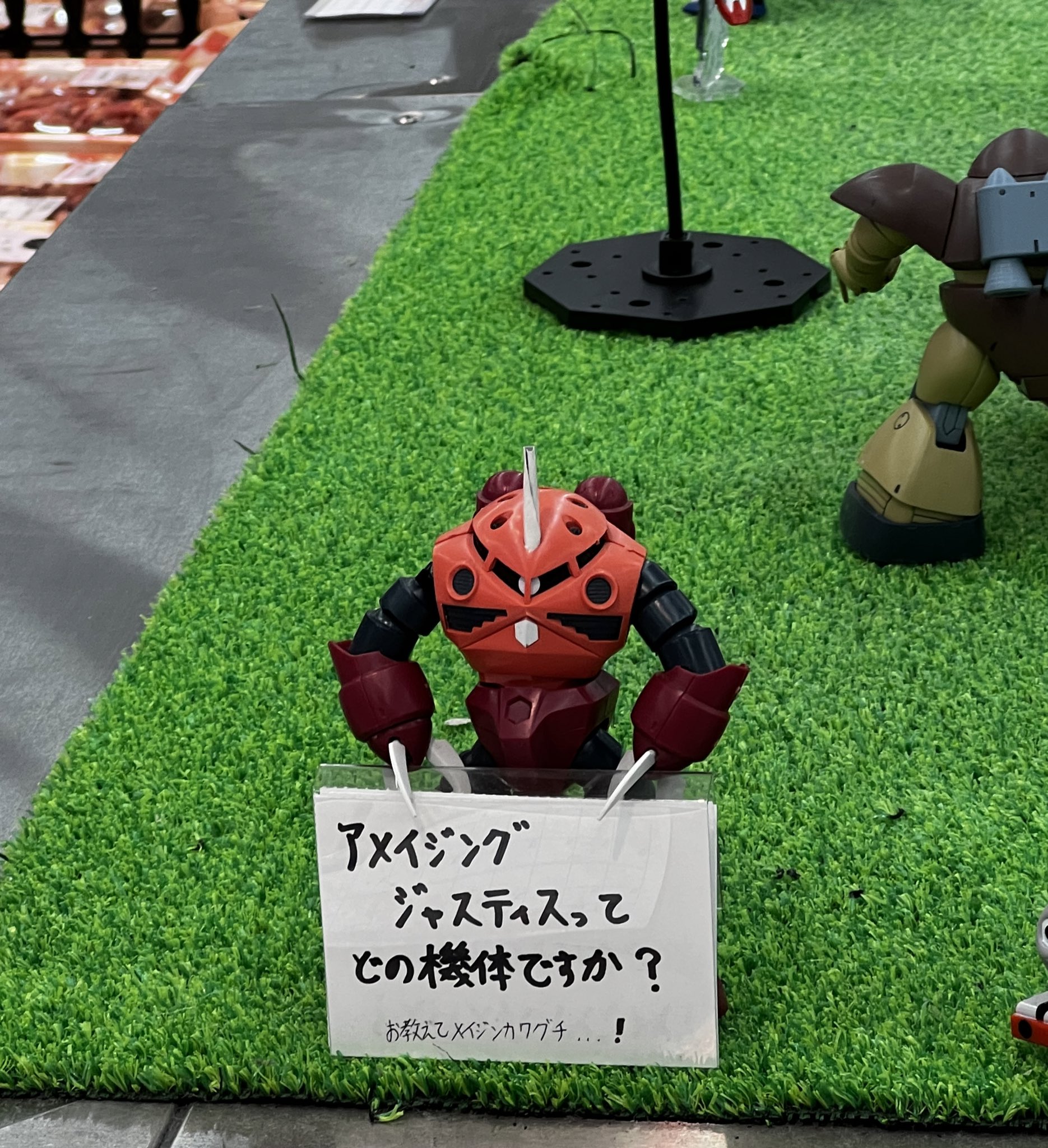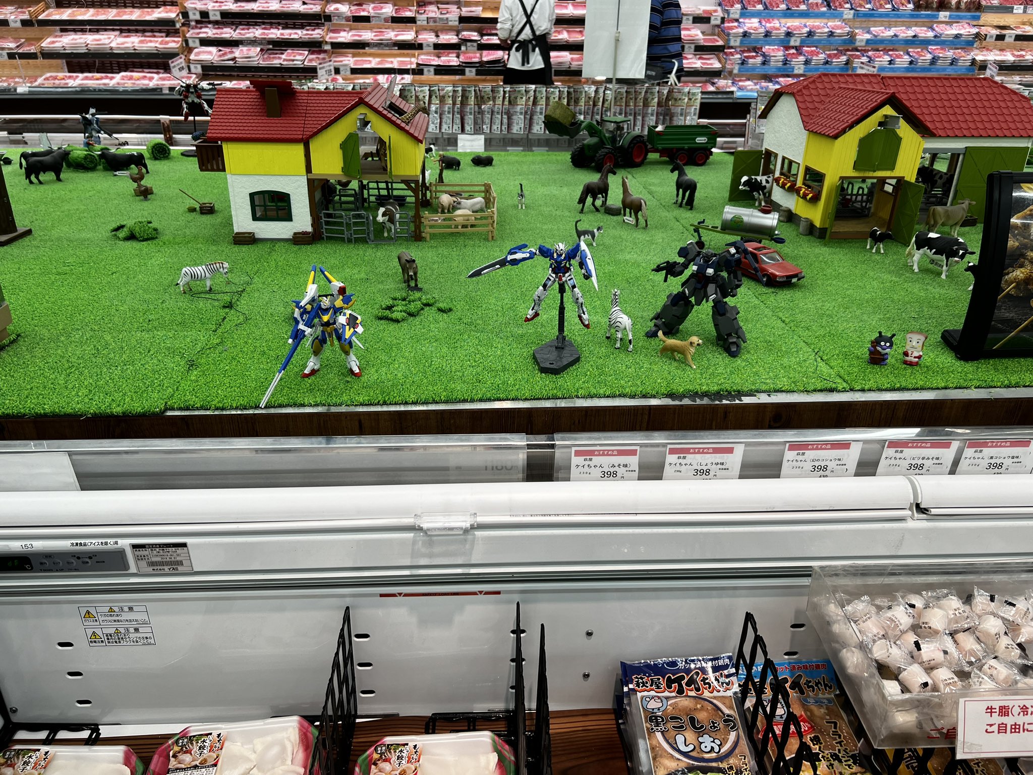 @tromboy141 な、なぜスーパーのコーナーにガンプラとジオラマが…ほのぼのとした舞台にガンプラを置くのはなぜなんだ…