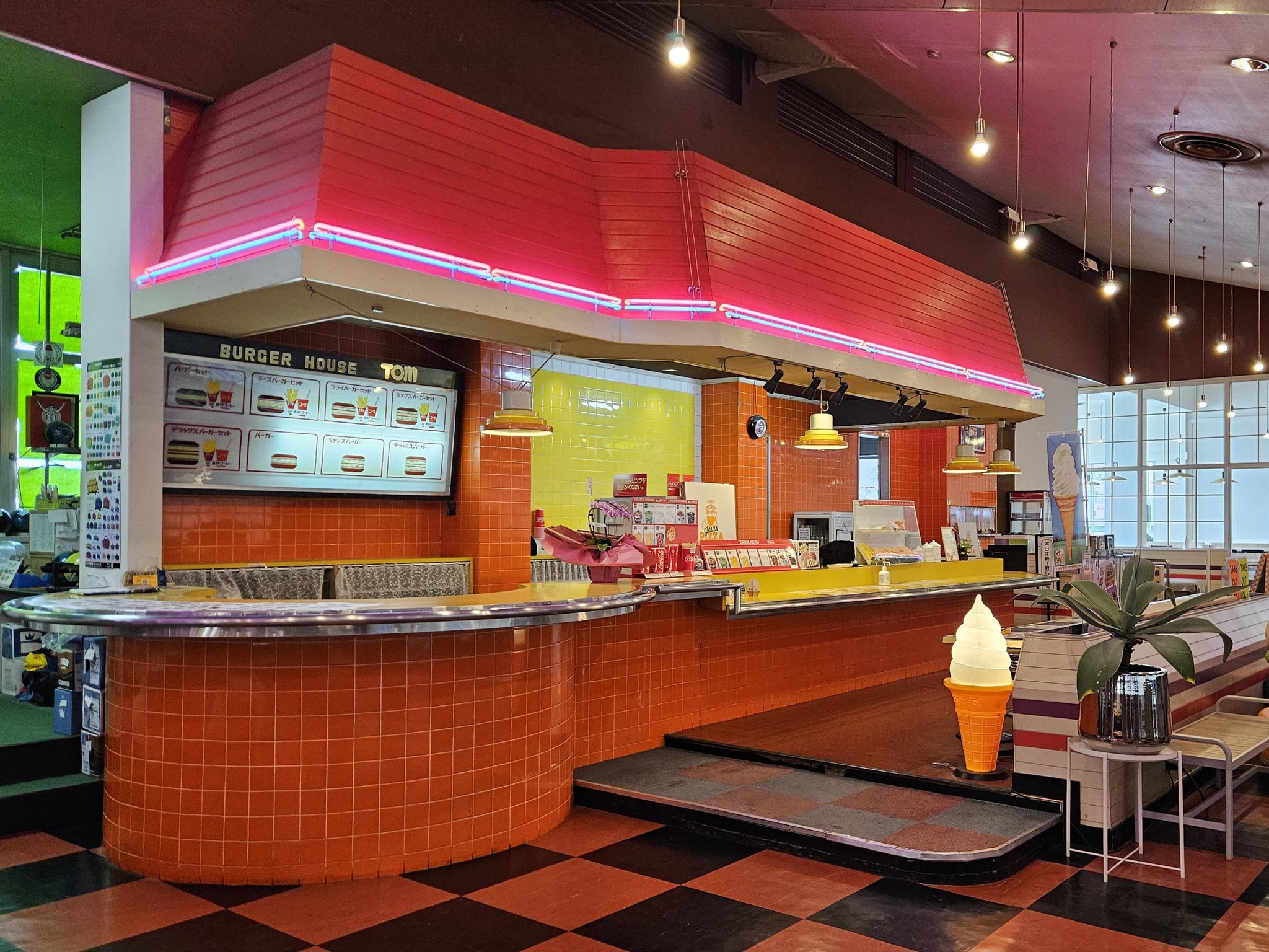 ボウリング場自体もレトロで好きだけど、このカウンターが最高にいい。色使いとタイルがいい。中学の修学旅行でディズニーに行った時、トゥモローランドのレストランのカウンター周辺がこういう感じの原色のタイルで、写るんですで壁の写真を撮った記憶が甦った🤩