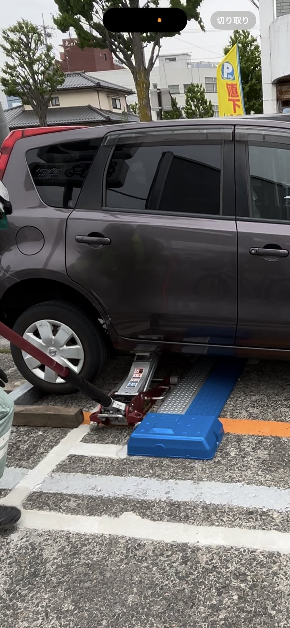 この車の所有者です。自分の車を後ろに下げるしか方法がなく、浮かせてから木を噛ませて、なんとか出庫できました。対応してくださった警官の方、業者の方には本当に感謝です。 https://t.co/TL8avpdMH1