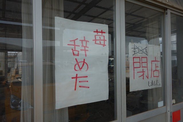 これ自分も写真撮ったから良く覚えているけど、手賀沼の道の駅しょうなん内にあった苺ビニールハウスが2018年に施設改築に伴い閉店した時の貼り紙。この場所には今では立派な野菜レストランが建ってます。 https://t.co/ZAeQbwFKIY