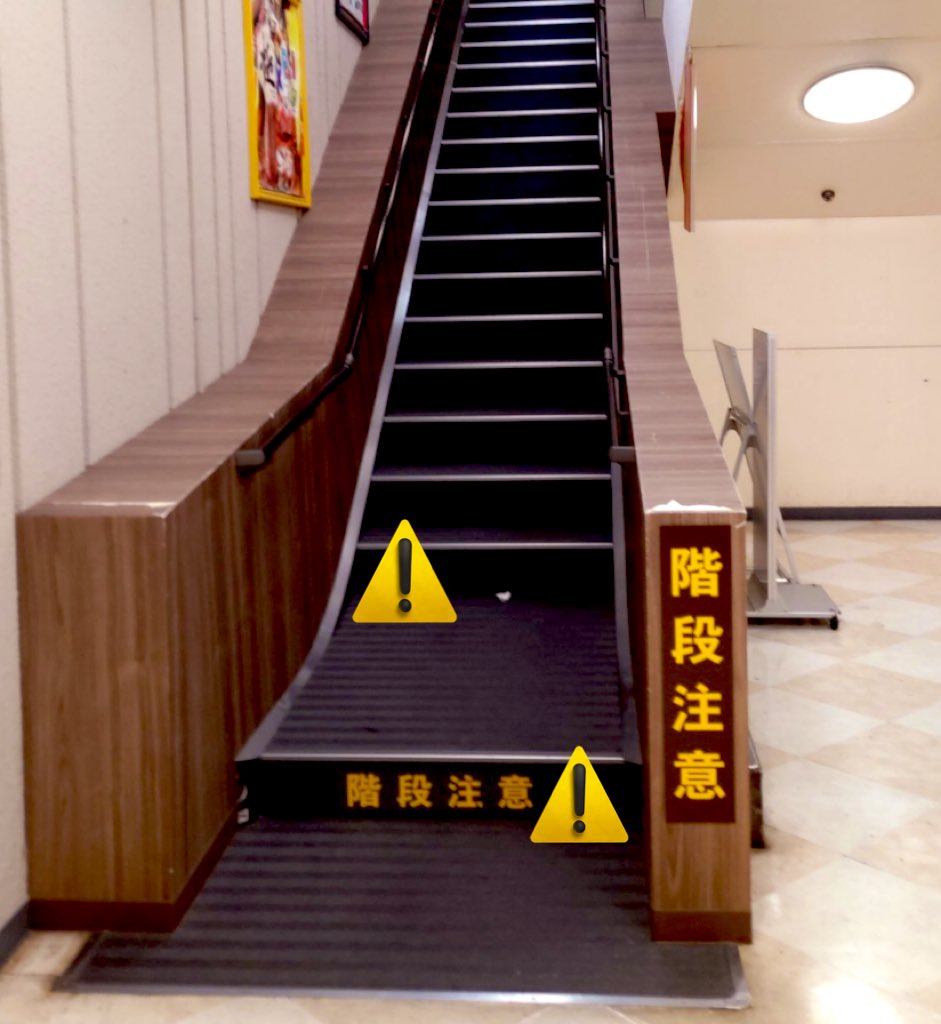 階段として認識してほしいなら、いかにも「エスカレーターです」みたいな配色をやめればいいのに・・・これもデザインの敗北というやつか