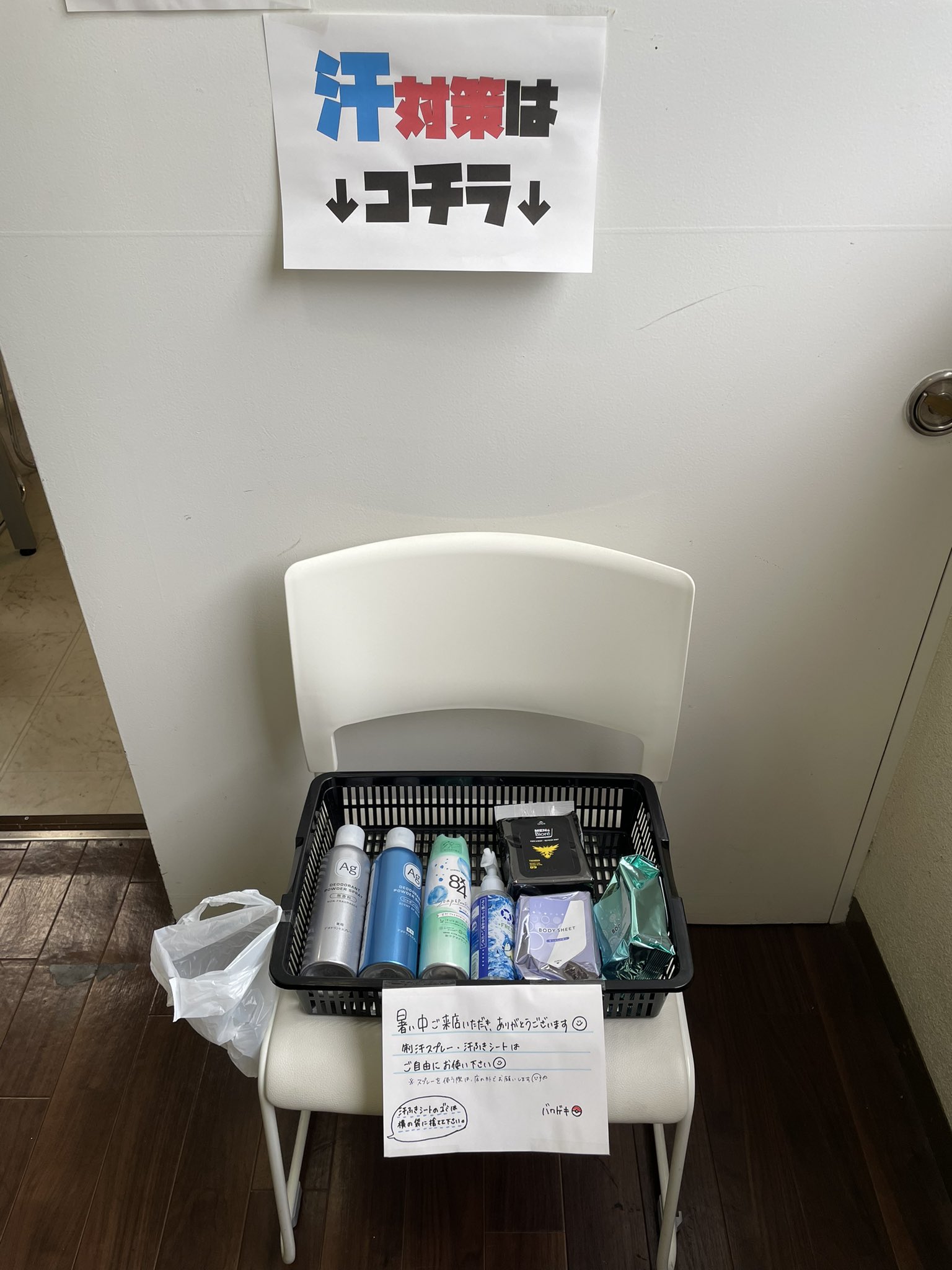 出発前に対策したのに移動中に汗かきまくって結局意味ないなんてことあるあるだからな…店の前に置いてあるなら遠慮せずに使ってくれの気持ち