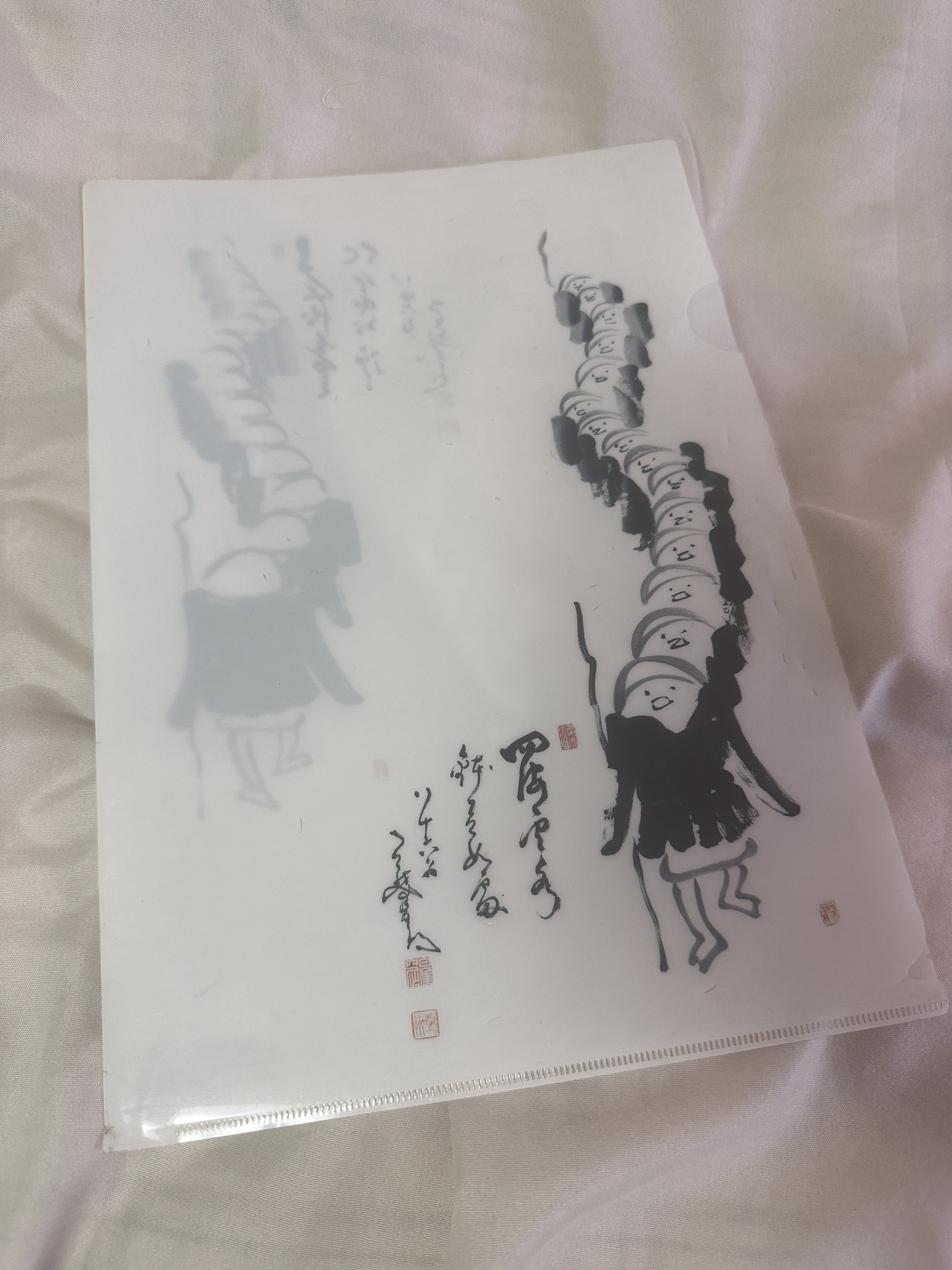 南天棒の雲水托鉢図だ!!托鉢に向かう多くの雲水(お坊さん)と戻って来る雲水の対比がいい味出してますよね悟りを得ることの難しさを暗喩しながら、雲水を応援する主題として有名ですが……煩悩にまみれた私にはゆるキャラにしか見えないなぁきゃわちい(*´∀`)