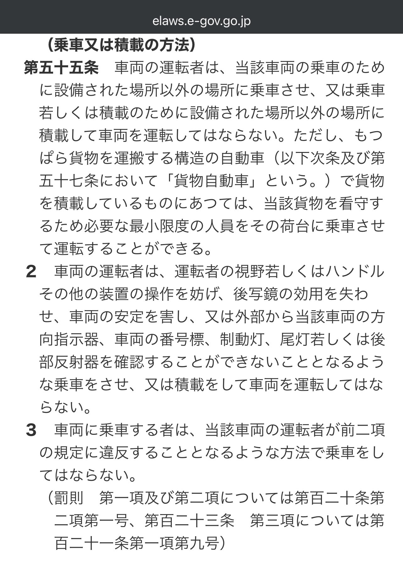 『乗車積載方法違反(道交法第55条など)』で5,000円の青切符を切られるからマジでマネすんなよ! https://t.co/PfOucQHd4N