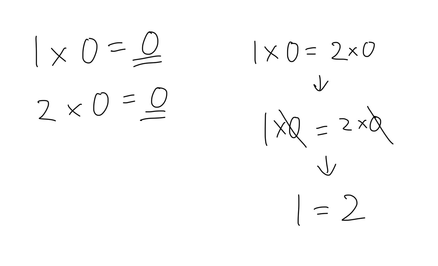 0で割る、がOKになるとこういう式が成立することになるからダメだよって覚えてる https://t.co/2c8xfy5UbY