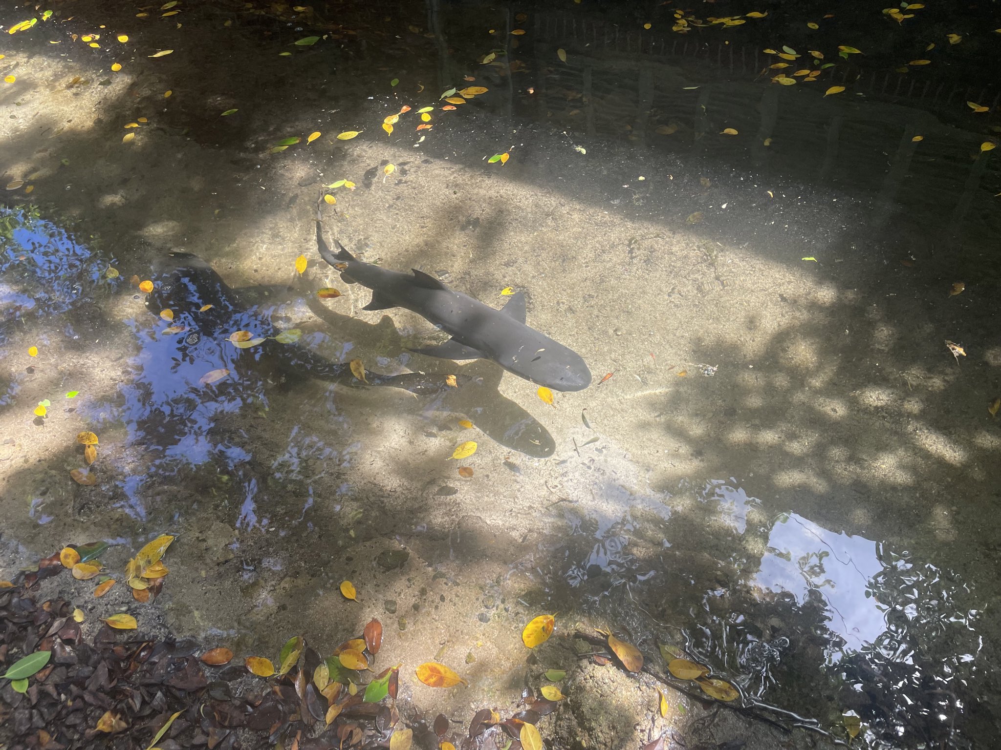 本当に水たまりみたいな池にサメがいた。 https://t.co/8zJ8OXM15J