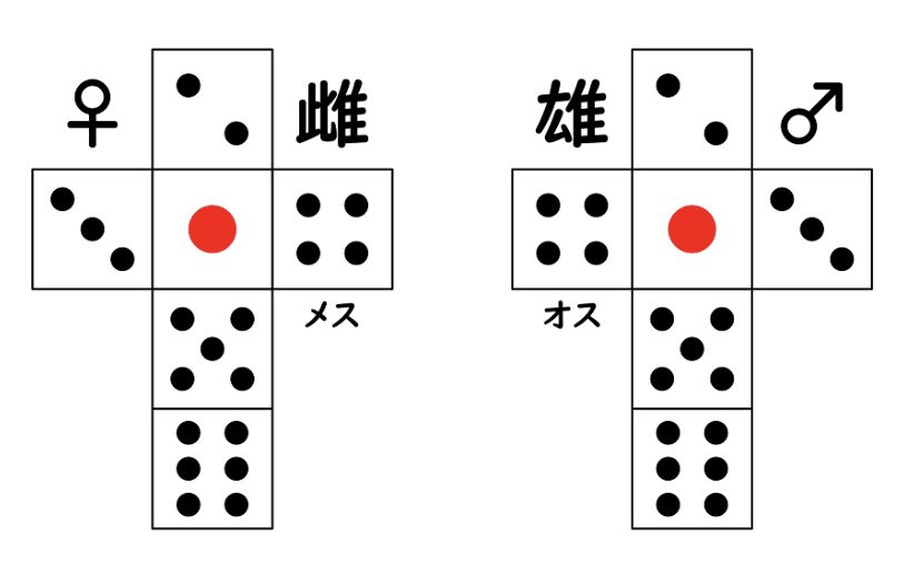 長年算数教えてきたけど,サイコロに雌雄があることを初めて知った。俺もまだまだ勉強が足りんな。 https://t.co/nTE1kZpV2z