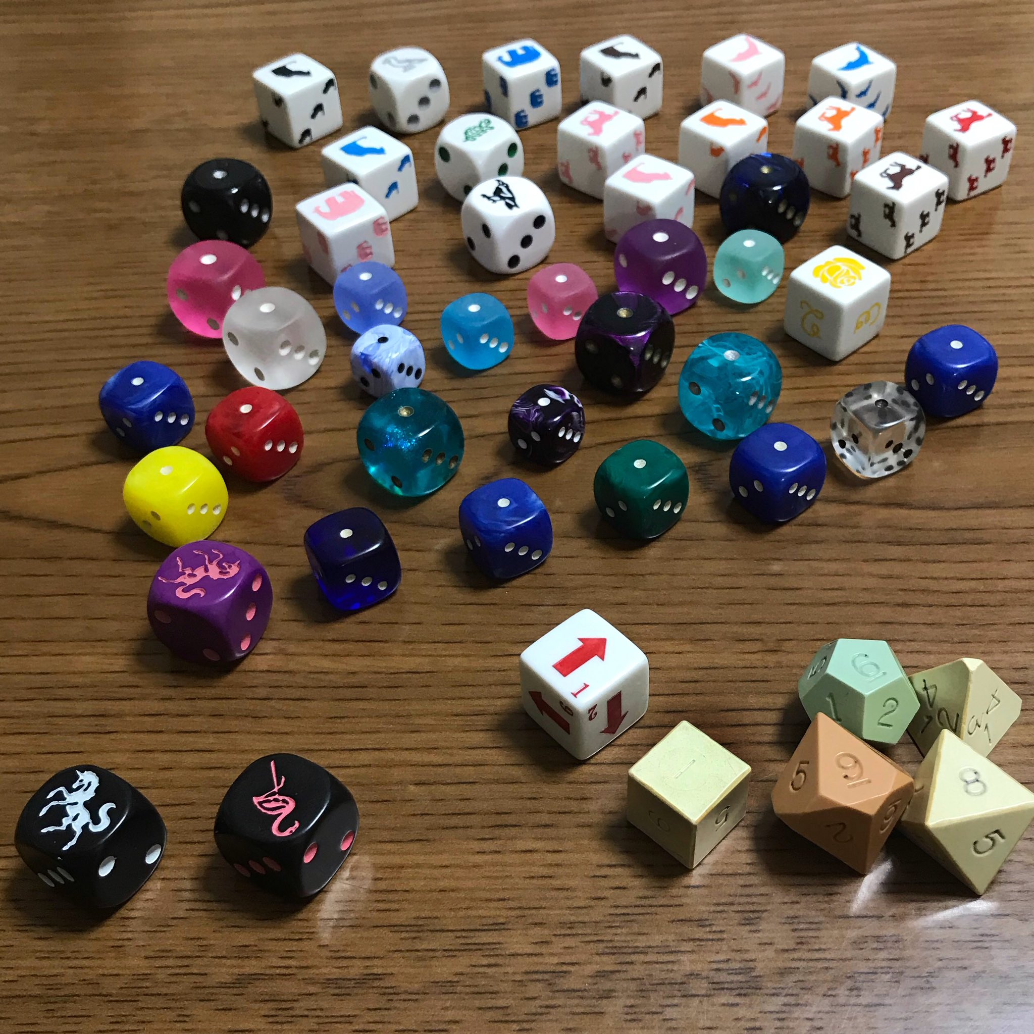 私のサイコロを調べてみたらやっぱりほとんどメスだった!ユニコーンはやっぱりオスなのか…でも色違い同デザインのやつはメスだ🤔右下二つは問題児。でも右下のダイスセットは赤箱か何かに入ってたやつらしい。貰い物。 https://t.co/DBlskPNT6C