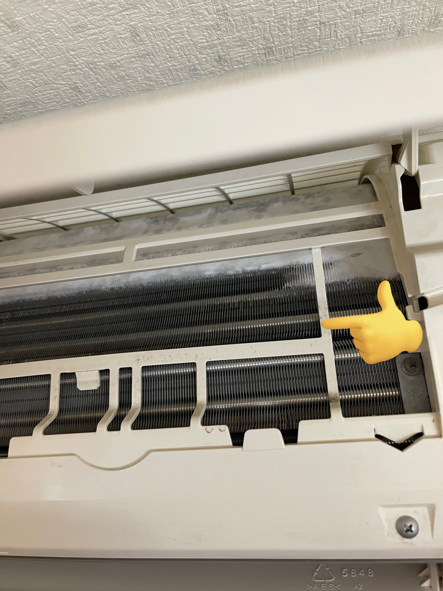 室内機で冷たい熱を放出できていないからフィンに冷熱がたまっているんですねつまり風が流れず熱交換されてない事を意味しています洗浄後との事ですから予想される原因は2つ①ファンが回っていないコネクタの刺し忘れや間違いモータと羽の接続不良②フィンが汚れてる汚れを押し込んだなど🧐