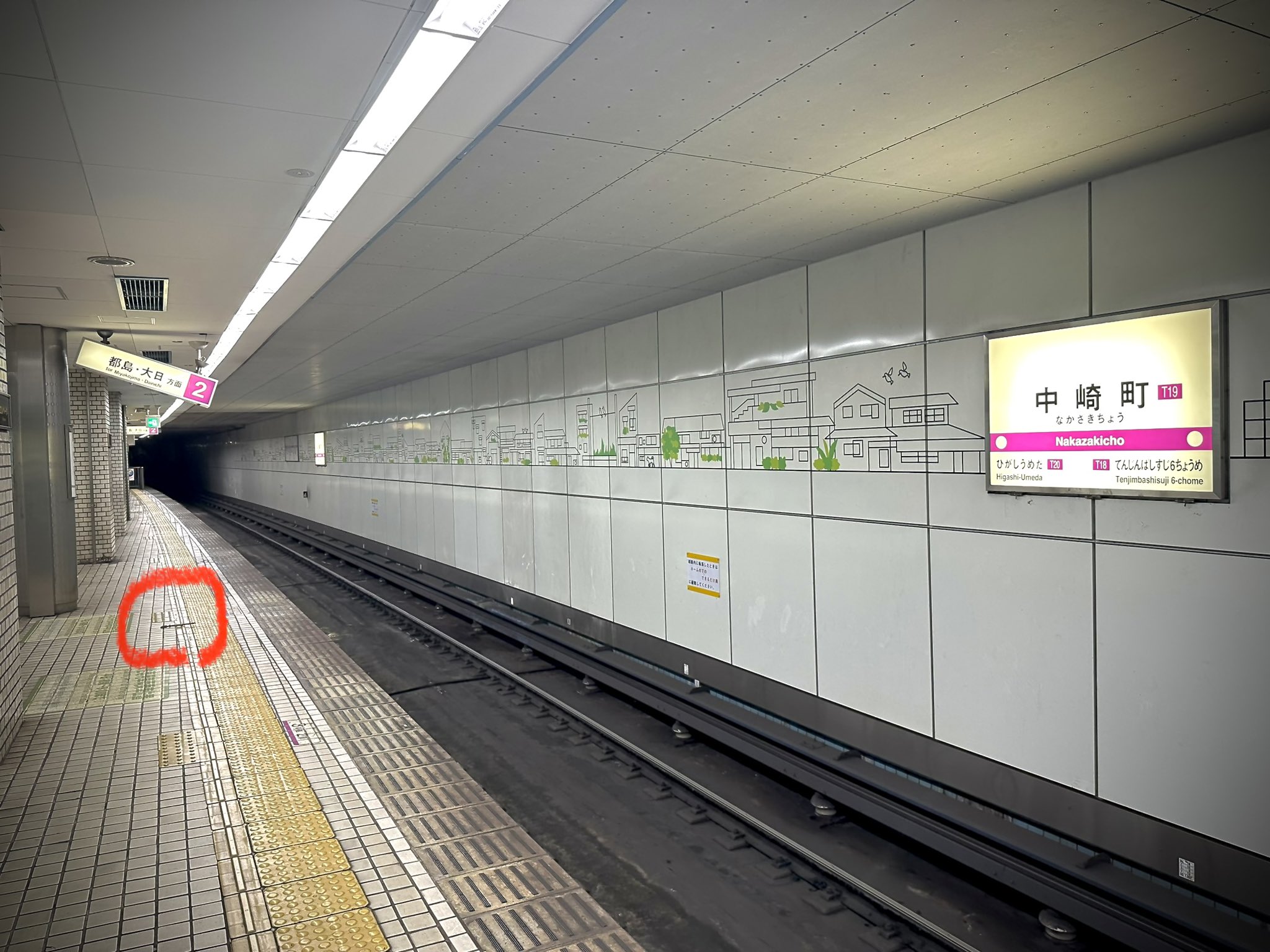 大阪メトロ谷町線中崎町駅ホームたまにココを通ります…怖っ