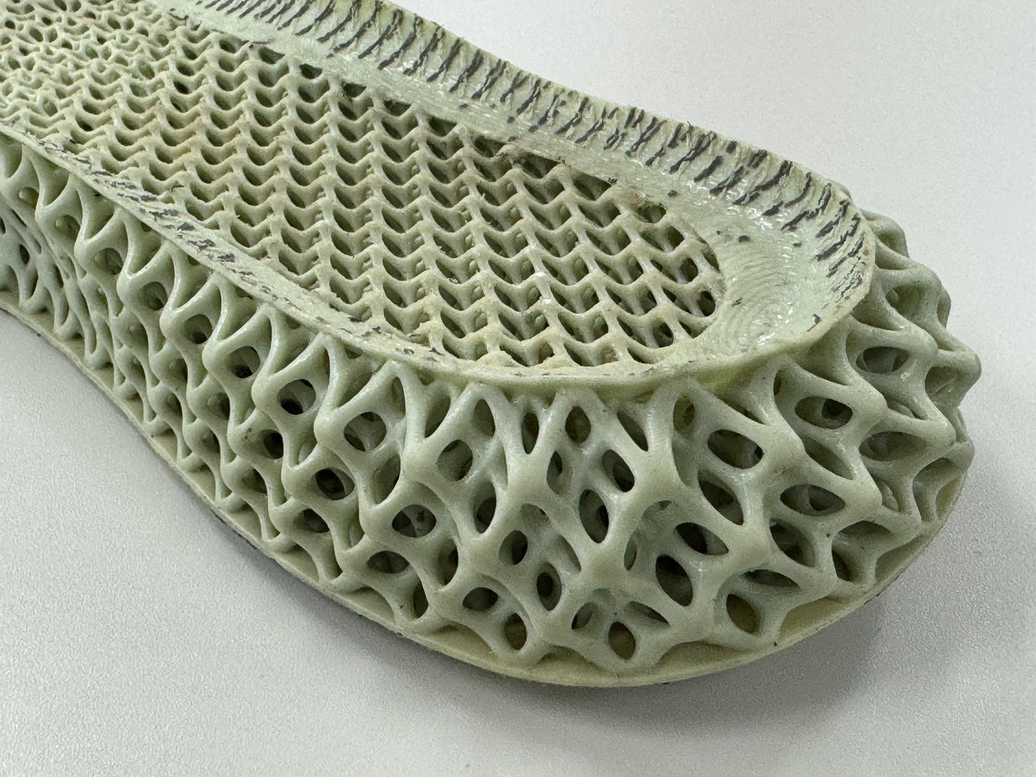 いま自分の中でかなりホットな、アディダスの3Dプリントシューズ。ミッドソールが3Dプリント製、ラティス構造になっていて不思議なクッション感ですが、快適なあまりもう一足買い足す。話題にしたら分解してミッドソールだけにしたものがあるということで見せてもらいました。 https://t.co/uXZy95HKFY