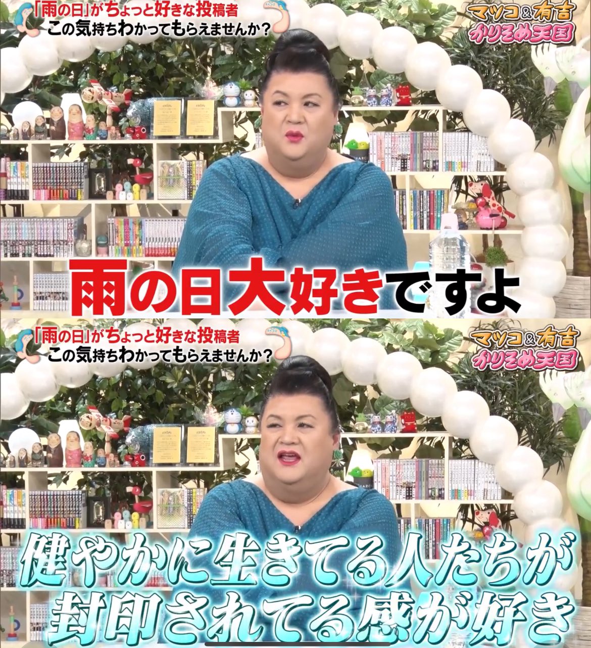 マツコが雨の日が好きな理由ワロタ。この考え方とても良いね。 https://t.co/Cu0b04Veqh
