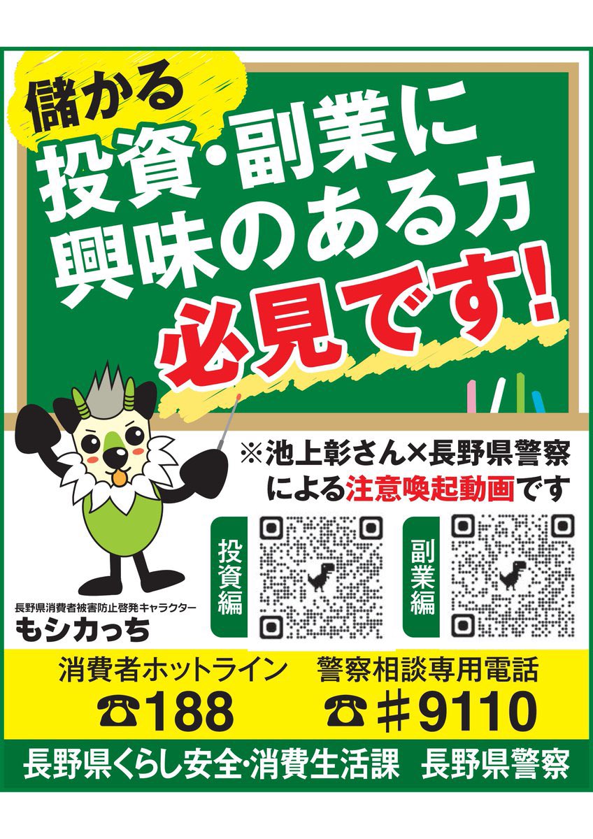 もしもし?!長野県警さんですか?!絶対儲かる投資について教えてもらえるって新聞で見かけたんだけど早く教えて!!