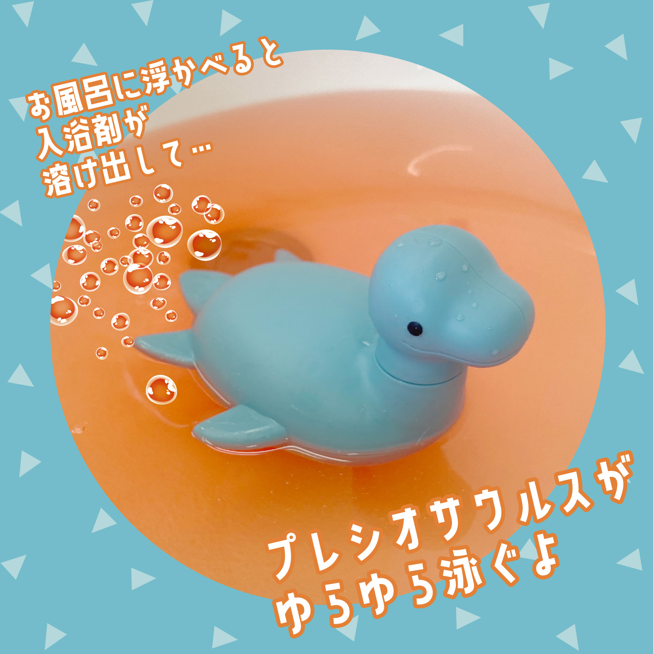 入浴剤の泡で「すすむ!プレシオサウルス」の登場です!粒状の入浴剤をセットしてお風呂に浮かべるだけ!入浴剤が溶けた泡でプレシオサウルスがゆらゆら進みます!溶けた後もぷかぷかお風呂に浮かべて遊べます🦕こちらの商品はセリア様にて発売です!ぜひお手に取ってみてください♪ https://t.co/TXa4jv2Lvv