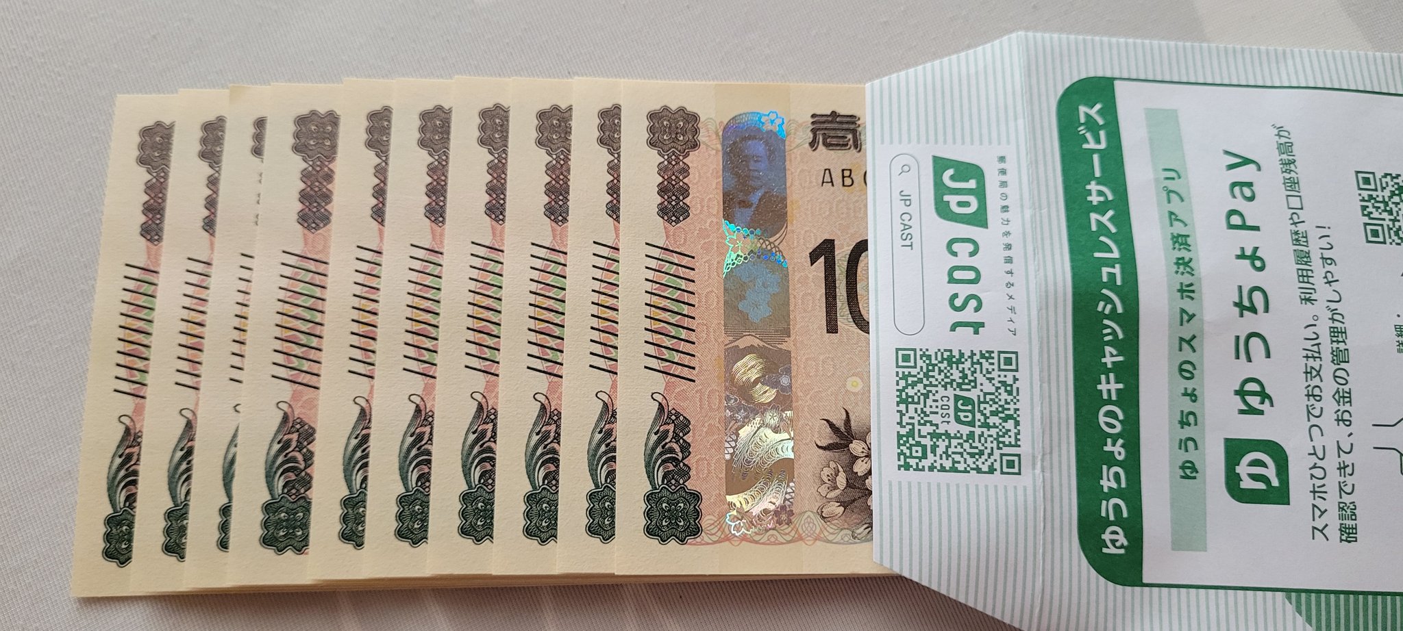 今日の万札10連ガチャ結果(ゆうちょ)。初日に全種新紙幣ゲットしたところ(地銀)も排出率100%だった。 https://t.co/VSIWF8em9t