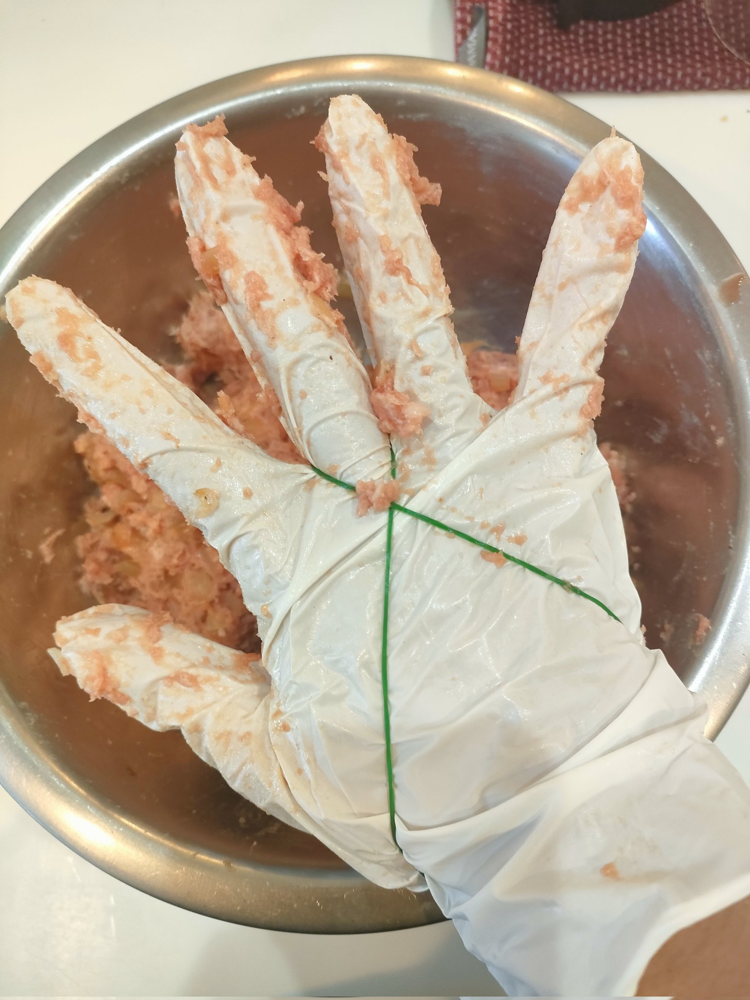 ハンバーグこねる時に地味にストレスだった手袋脱げちゃう問題が、これで軽減するよ https://t.co/fWpXntO9eI