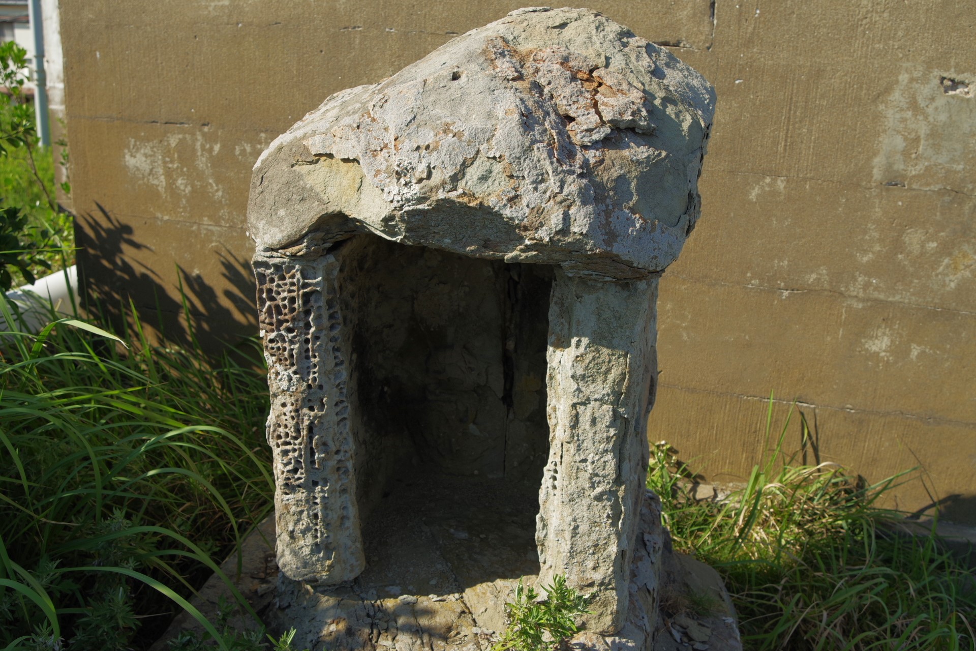 奥にあった祠も同じ様に浸食されていた。偶然かも知れないですが、左側の方が浸食が激しく、狛犬も同様に対のうち、左の方のみ激しく風化していた。風の流れだとしたら、と想像するとより大きなものを感じる。 https://t.co/SKI7371OFe
