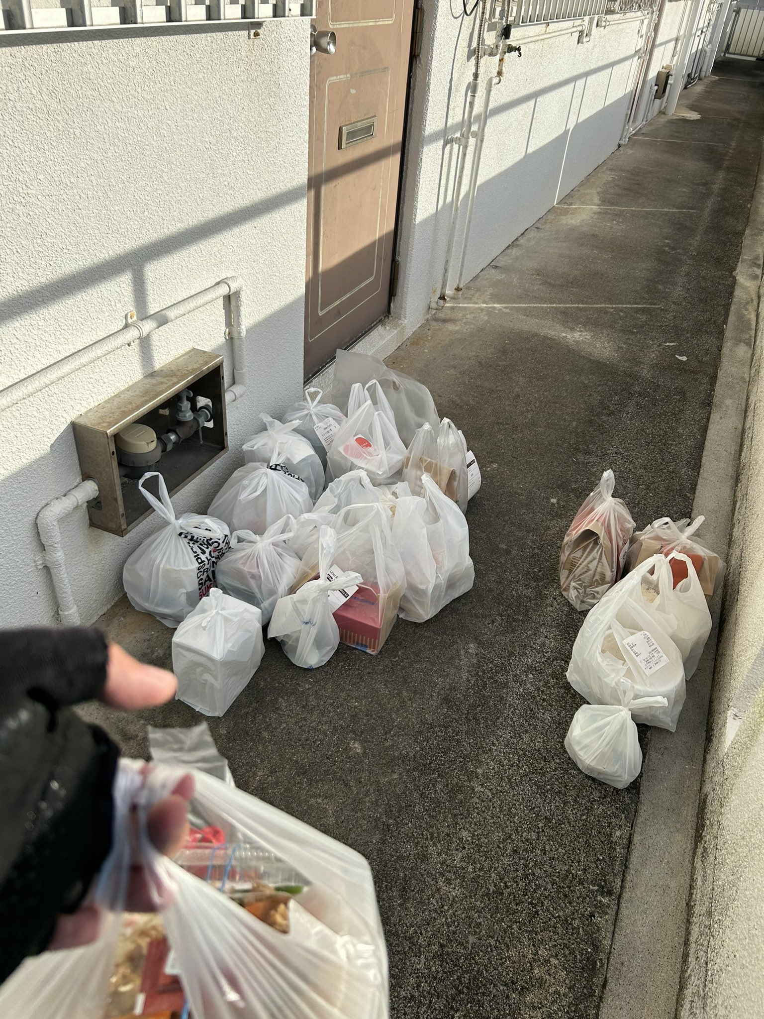 【衝撃】一体何故? あるアパートのドア前に大量のデリバリーフードが並ぶ異様な光景🤔