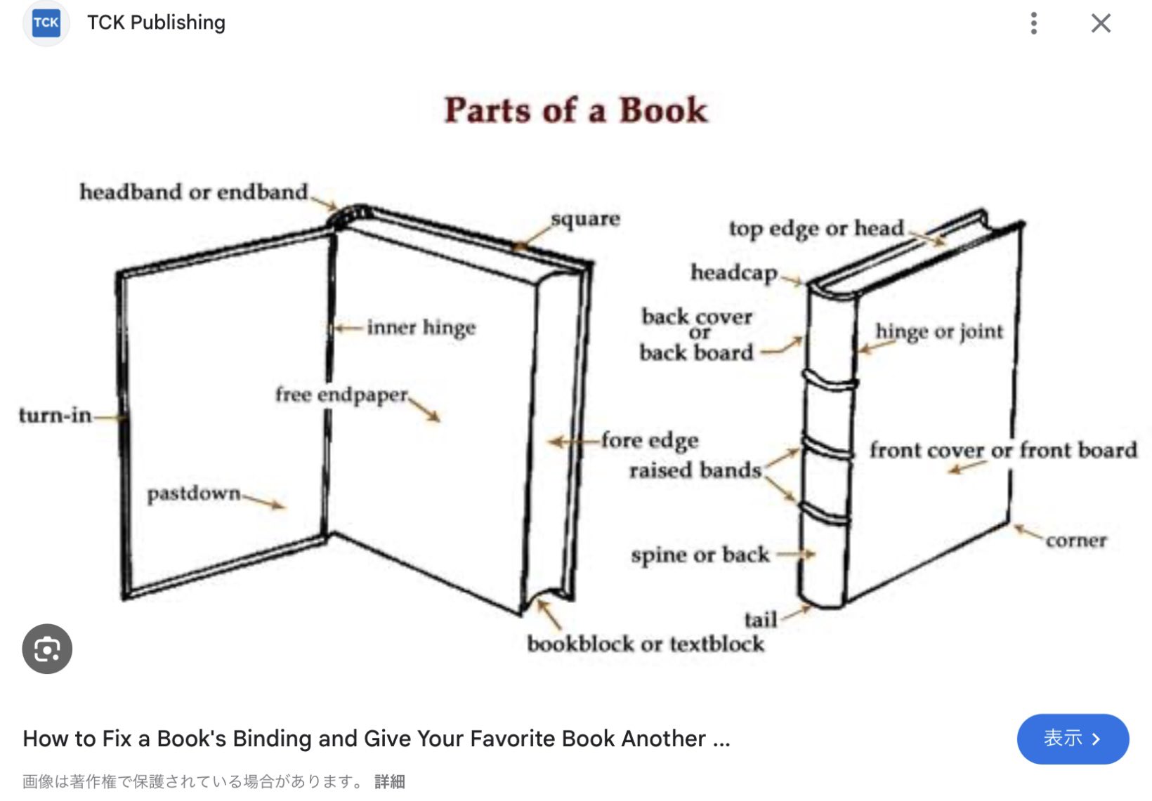 @bookworm_hon 日本の本のパーツについて言い方知りませんでしたが、アメリカの美大でbook binding のクラスをとったので、英語では何となく知ってます。笑 https://t.co/BhLUNgzGv5