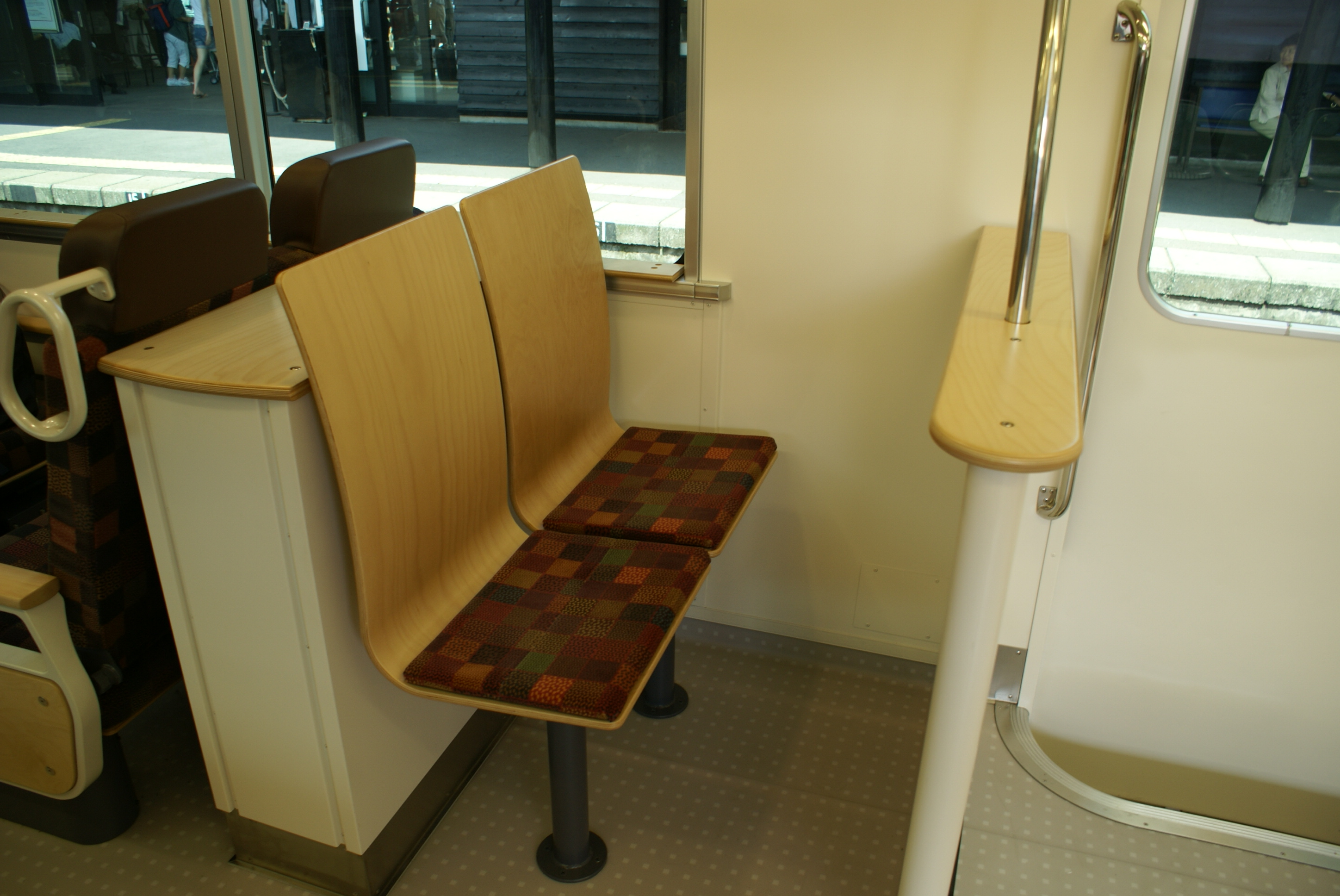 @xo_gaki さすがに、木製の方は長距離路線にはないですしあと、この硬そうで座りにくそうに見える木製の椅子、意外と計算されてて座り心地は悪くない