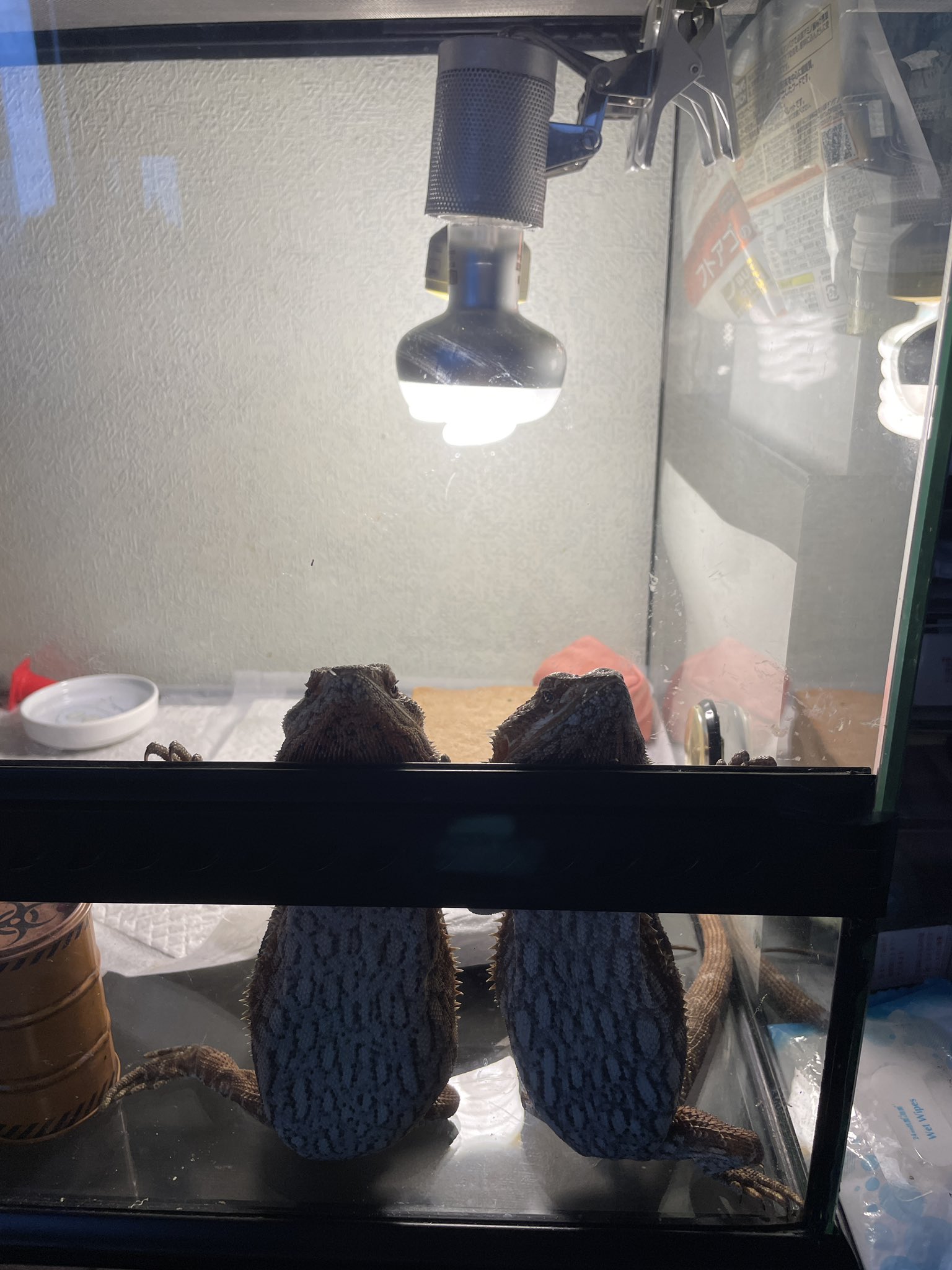 聞いてください。仕事から夜帰ると大体こうやって待ってるんですよ(放置されてケージ内いつも大荒れw)めちゃくそ可愛くないですか?全世界に知ってほしい😭✨✨✨爬虫類だってこうやってかまってアピールするんだって勝手に解釈してますが、トカゲ飼いのみなさんどう思いますかぁ? https://t.co/Aa1QbY5KdO
