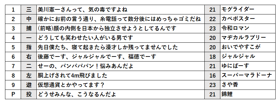 M-1グランプリ決勝ネタの好きな”つかみ”で打線組んだ https://t.co/LXK7MGdUQo