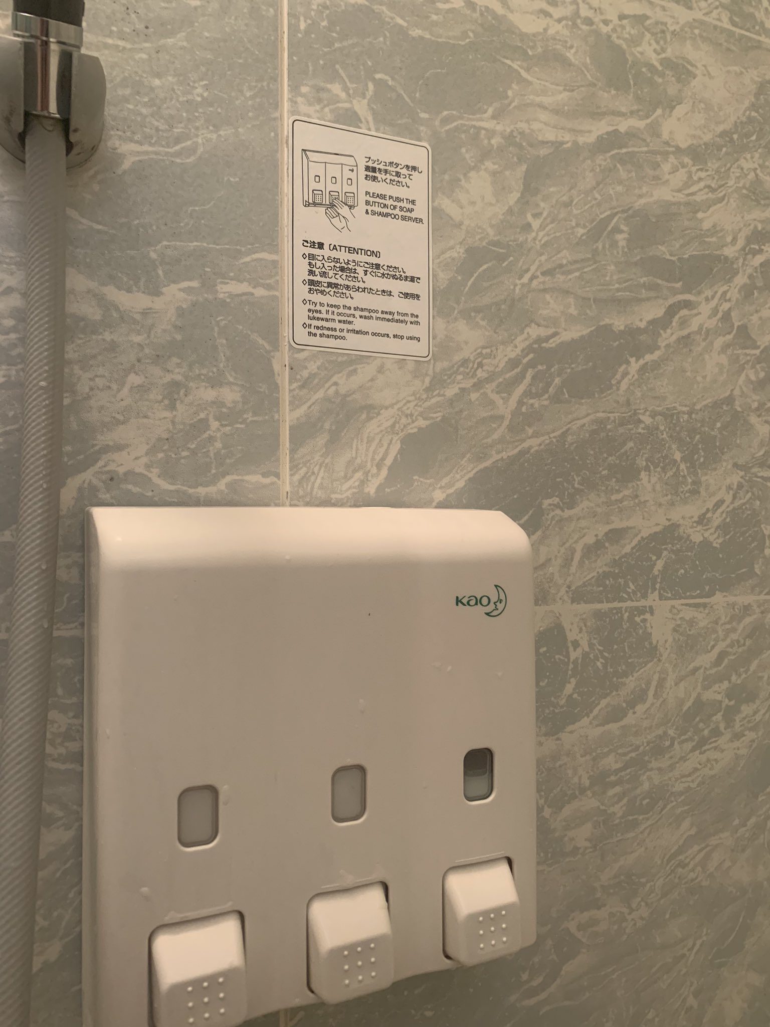 盗難が多いからこうなっちゃったんだっけ?もう少しグレード高いホテルと小分けのをフロントに置いてるけど、これもたまに必要以上に持っていく客がいるらしい。他には大浴場にして盗みにくいようにするってアプローチをするホテルもあるよね
