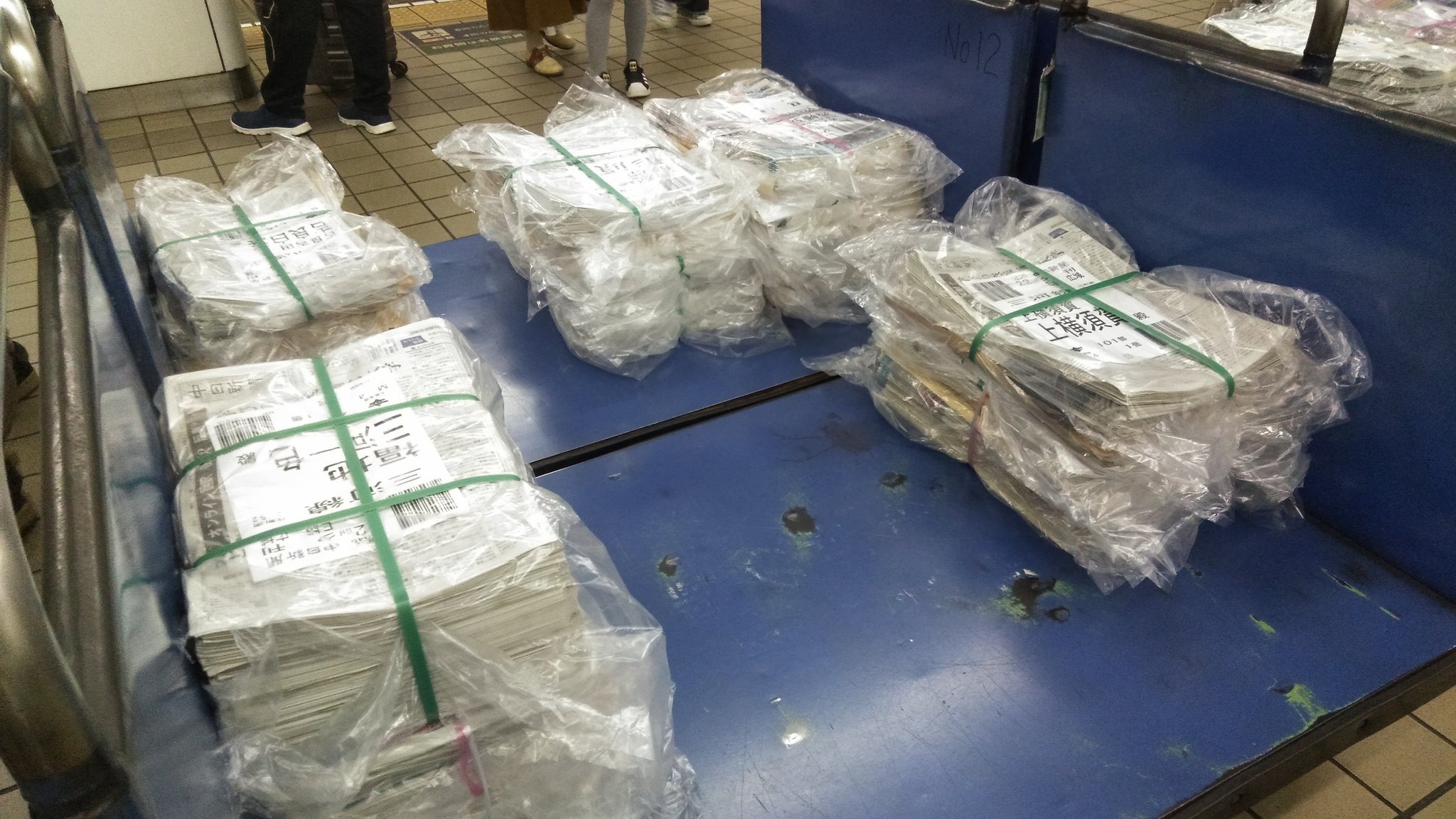 @273keiYAKUMO こんな感じの新聞(夕刊)が列車に積み込まれて輸送されます。地上にある荷捌き場所から新聞をホームに下ろすシューターと言われています。 https://t.co/YQM5ypjF4H