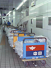 電車で運ぶ新聞を上からホームに流してる。名古屋から何度か新聞たちと一緒に乗った事がある。