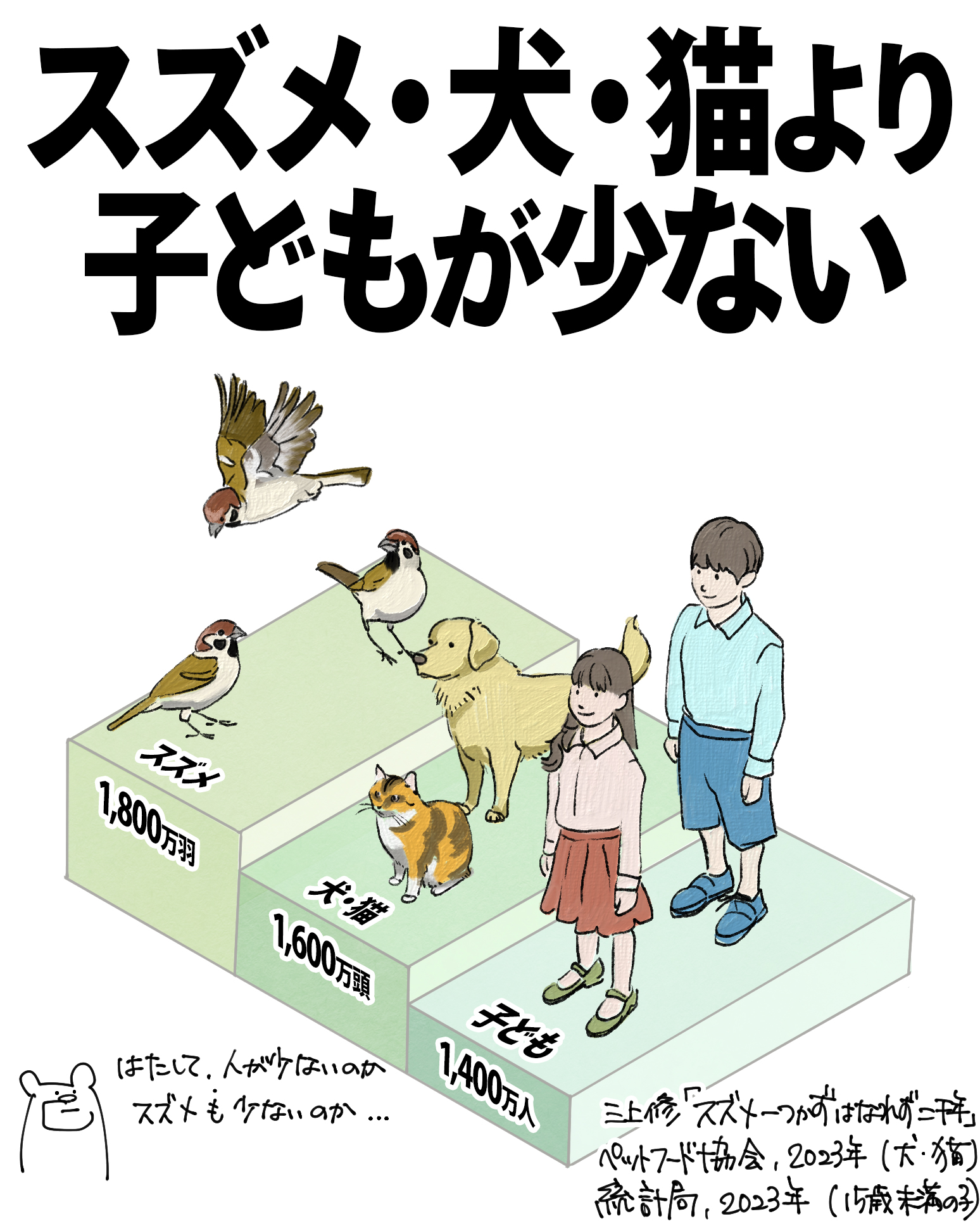 日本の子どもは、すずめちゃんやわんこ・にゃんこより少ない存在なのです。