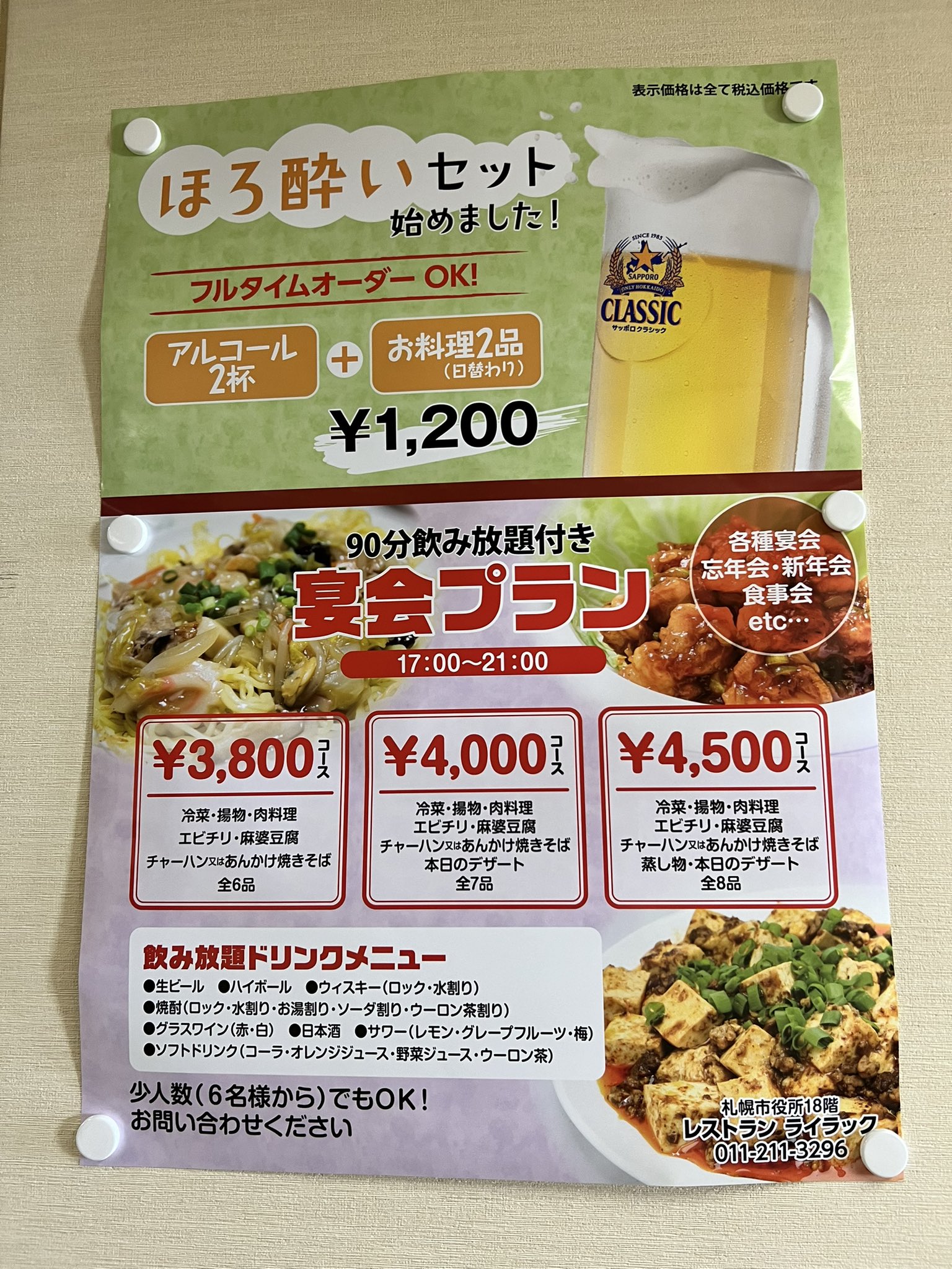 札幌市役所18階、中華レストラン ライラック土日祝日以外の平日営業 10時30分~18時(17時~のディナーは、6人以上の宴会のみ、予約制)https://t.co/QUWaaSN89H