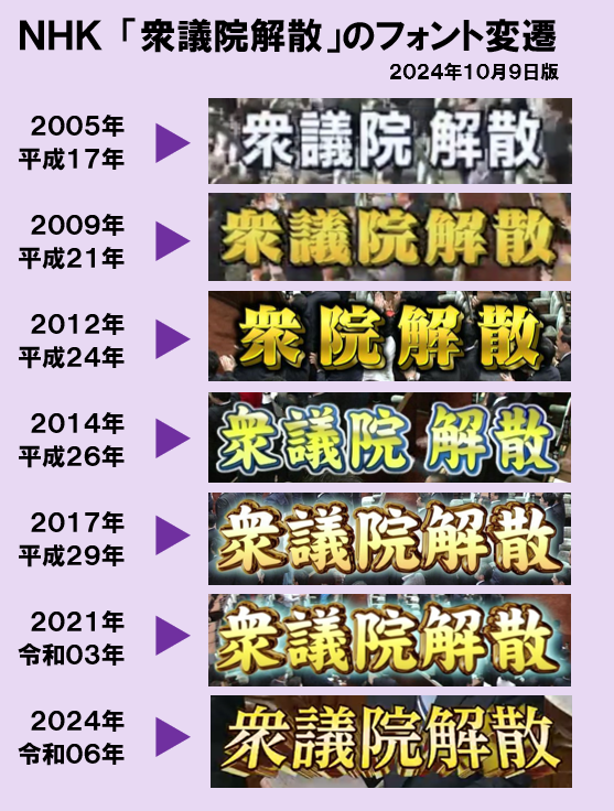 NHKの衆議院解散テロップの歴代フォント2024年版を作りました。#衆議院解散 https://t.co/BBYj5gGouJ