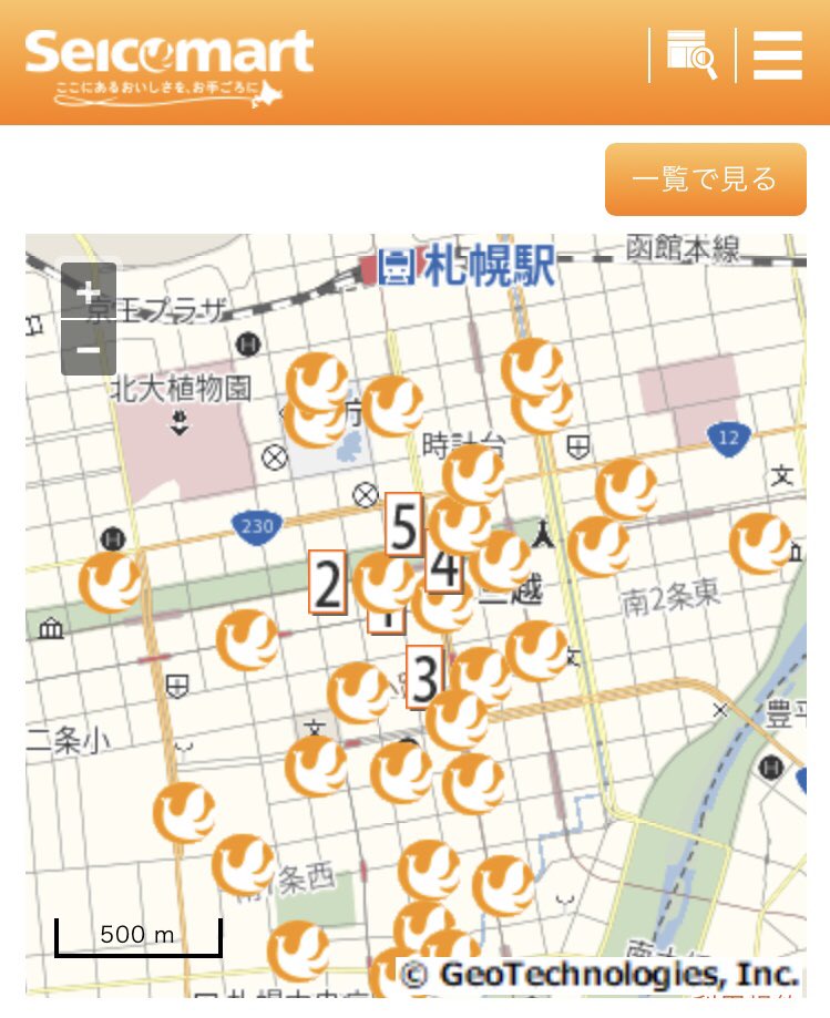 セイコーマートのホームページ「地図で見る」という店舗検索機能。事故物件公示サイト「大島てる」を彷彿とさせるデザイン。 https://t.co/Pe8KPwMIYC