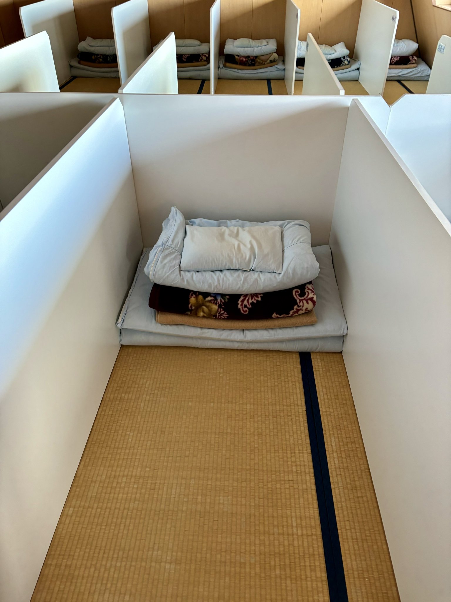 @UI_Anime765 好きかも、この空間。山小屋は寝返りできない・互い違いで寝ると聞いていたので、コレは高級山小屋だなと思いました。フェリーもこうだといいな?