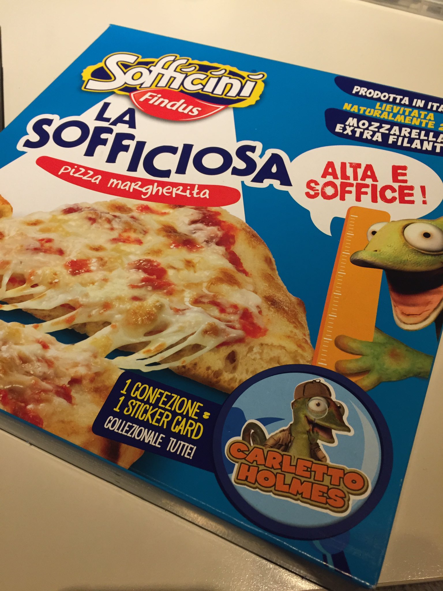 こちらイタリアはピッツァに直にオマケが入っている。ビニールの外じゃなく内側に、カードは🍕のチーズに触れている。食品衛生とか度外視。伊はよくサルモネラ菌などが色々な食品から検出されてスーパーから回収されている。 https://t.co/MKzmTJl3DG