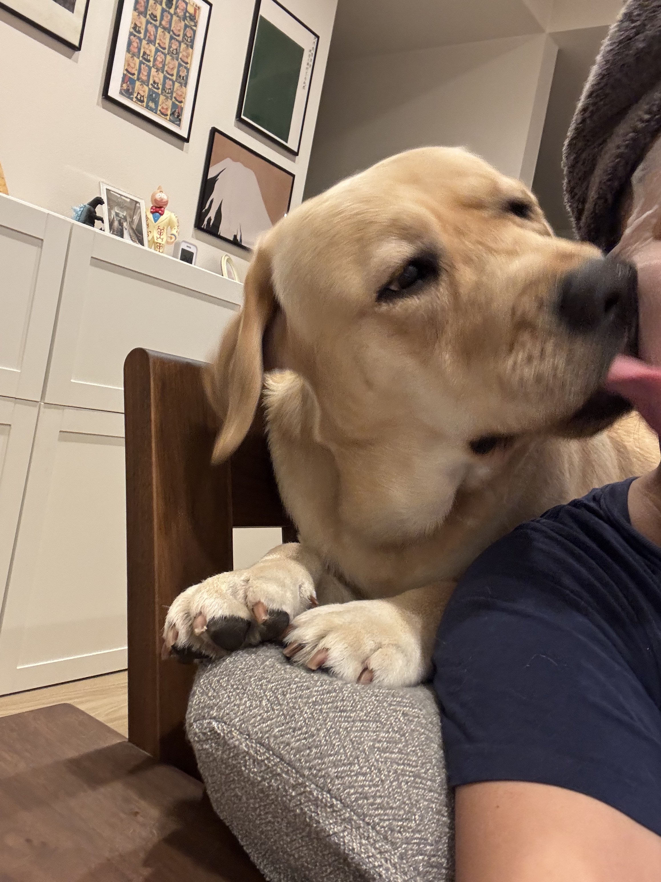 【悲報】フェイスパックしている飼い主の顔を舐めてしまったワンコのリアクションwww