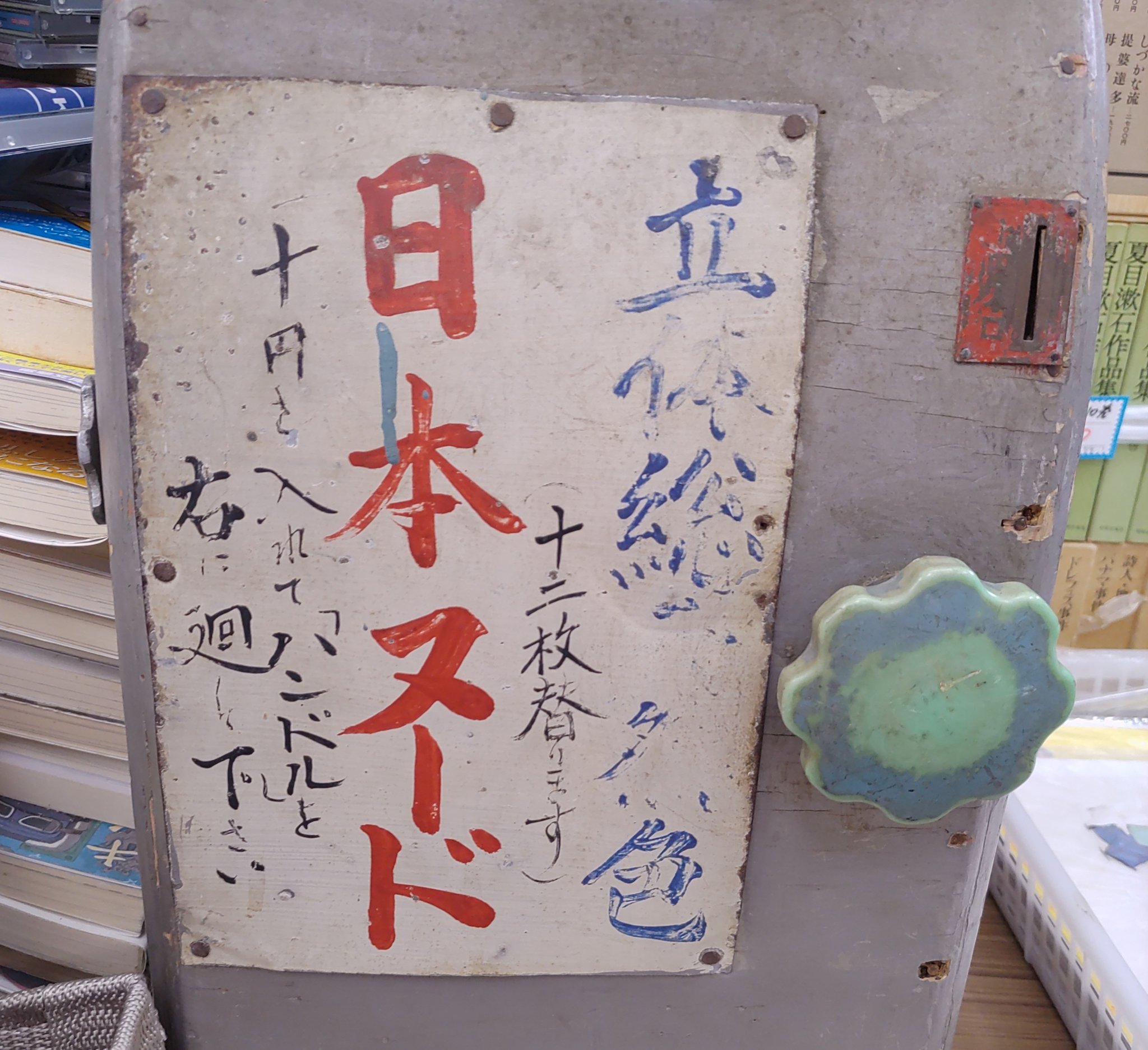 ご厚意ですごい物を撮らせていただいた。今日の遠出にこれでお釣りが来る(/・ω・)/「立体総天然色(十二枚替ります)」「日本ヌード」「十円を入れて『ハンドル』を右に廻して下さい」、これこそ本当に失われた貴重過ぎる庶民文化遺産だろう。博物館が両手を挙げて買い入れるべきではなかろうか(笑) https://t.co/SpgJxtFUkT