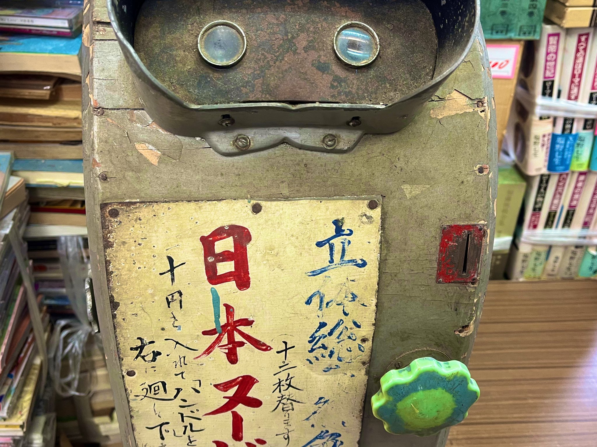 今日の千葉古書交換会に出た珍品。10円を入れて中を覗きこむ仕様にになっています。昭和のホテルなどに設置されていた模様。きちんと落札されました。 https://t.co/iq4SoLLL8y