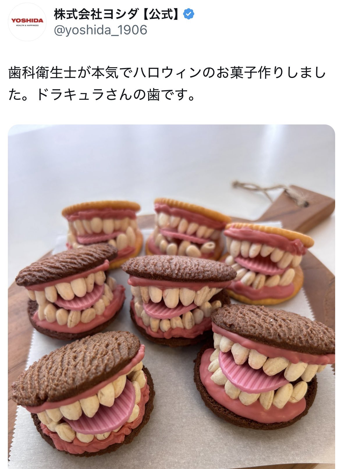 歯科衛生士が本気でハロウィンのお菓子作りしました。ドラキュラさんの歯です。 https://t.co/um7JNUPUt0