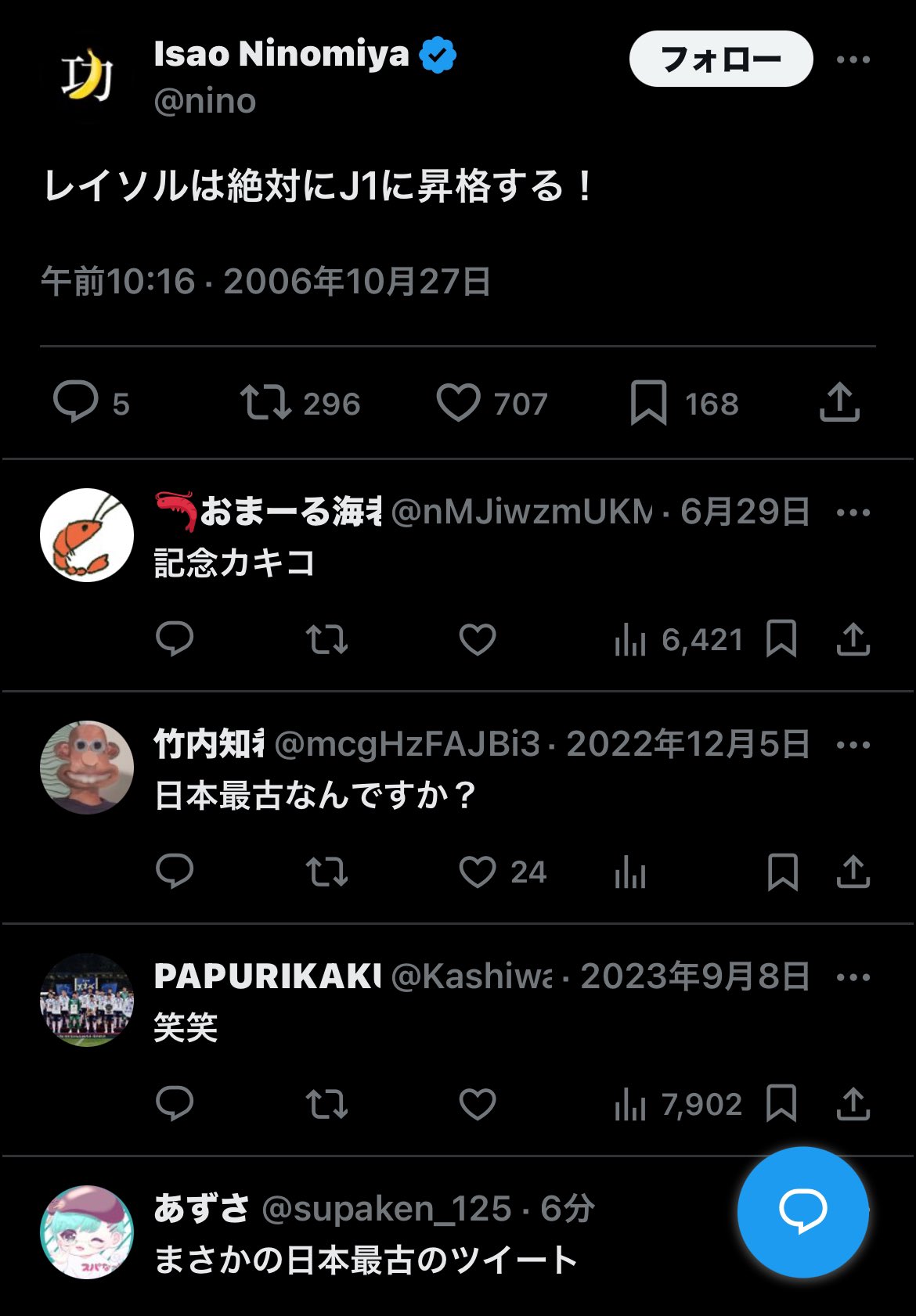 日本最古のツイートがJ関連なの草 https://t.co/9mKyKuCeUZ
