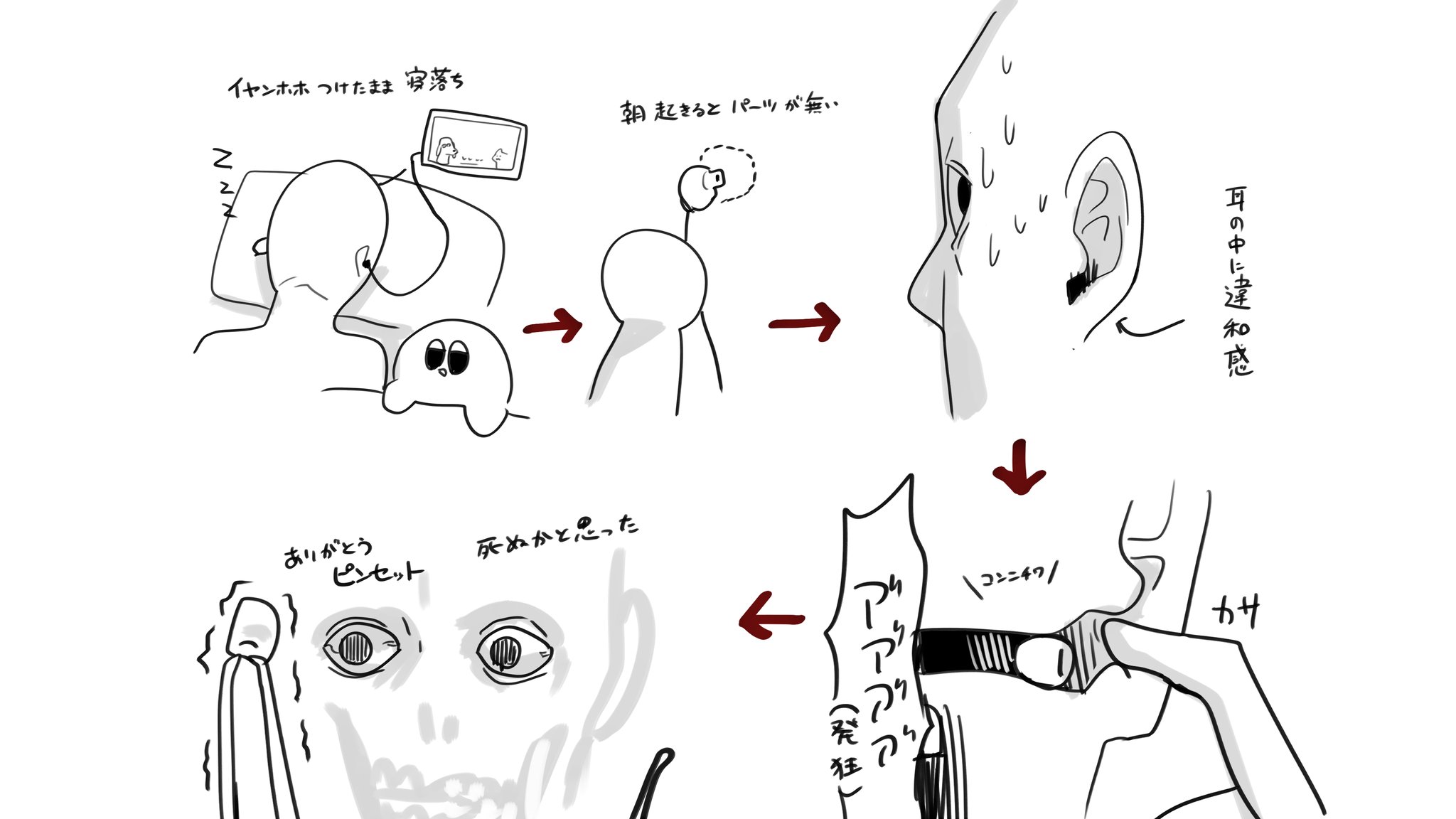 @shiburingaru321 寝落ち用に設計されてるイヤホンはイヤーピース一体型になってるのでこういう事故が起こらない横向きになってイヤホンを潰してても痛くないし音も良く聞こえるので寝落ち用イヤホンを買おう.