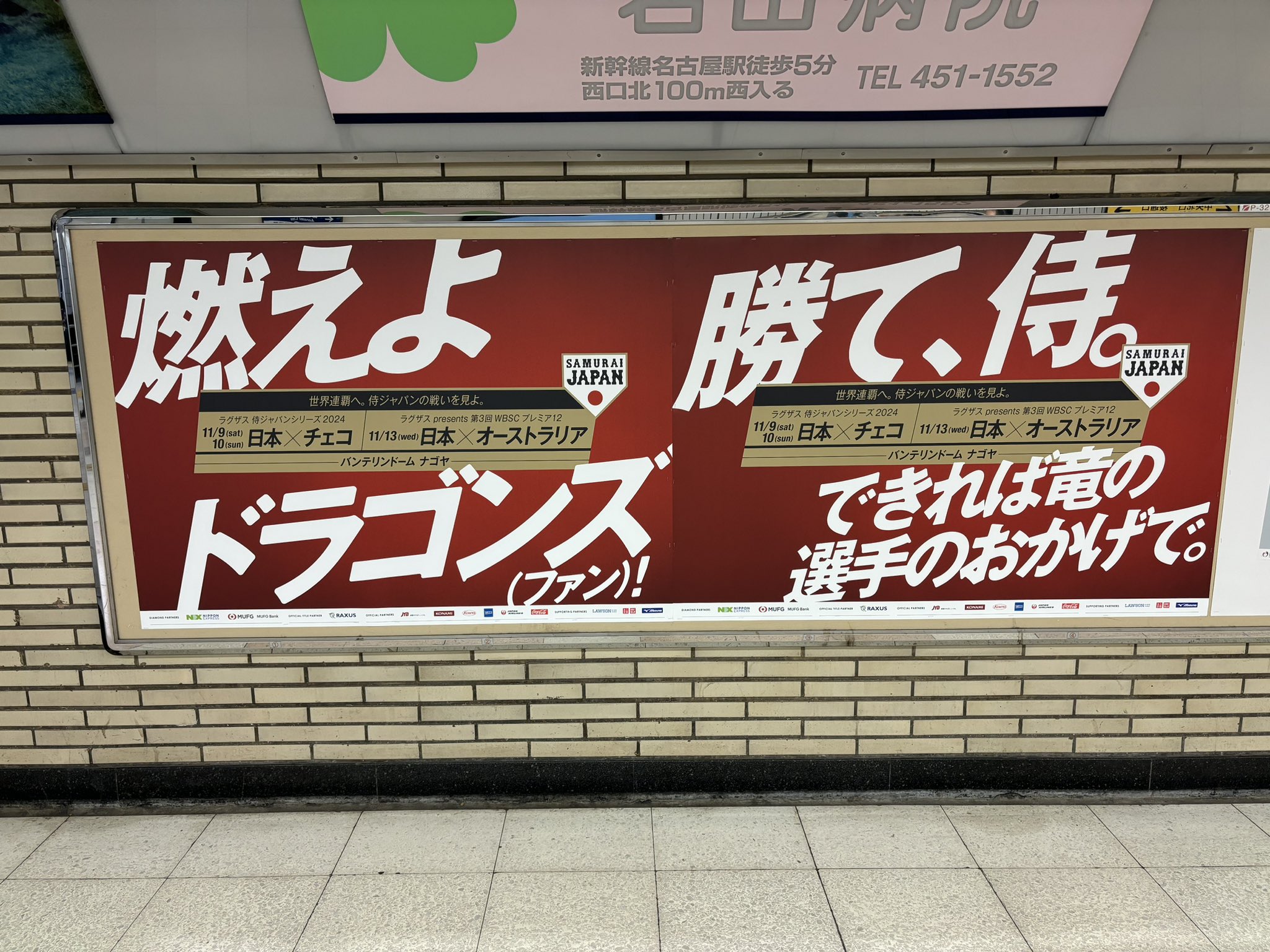 【困惑】名古屋駅の『侍ジャパンシリーズ』広告が名古屋ナイズされすぎだと話題にwww
