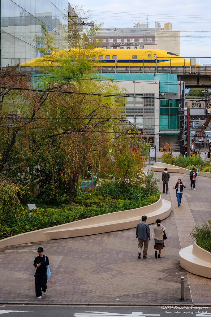夕方手前の京都市街。一瞬現れた1両編成のドクターイエローに気がついた人は…誰もいなかった。 https://t.co/jOrYBUPwdm