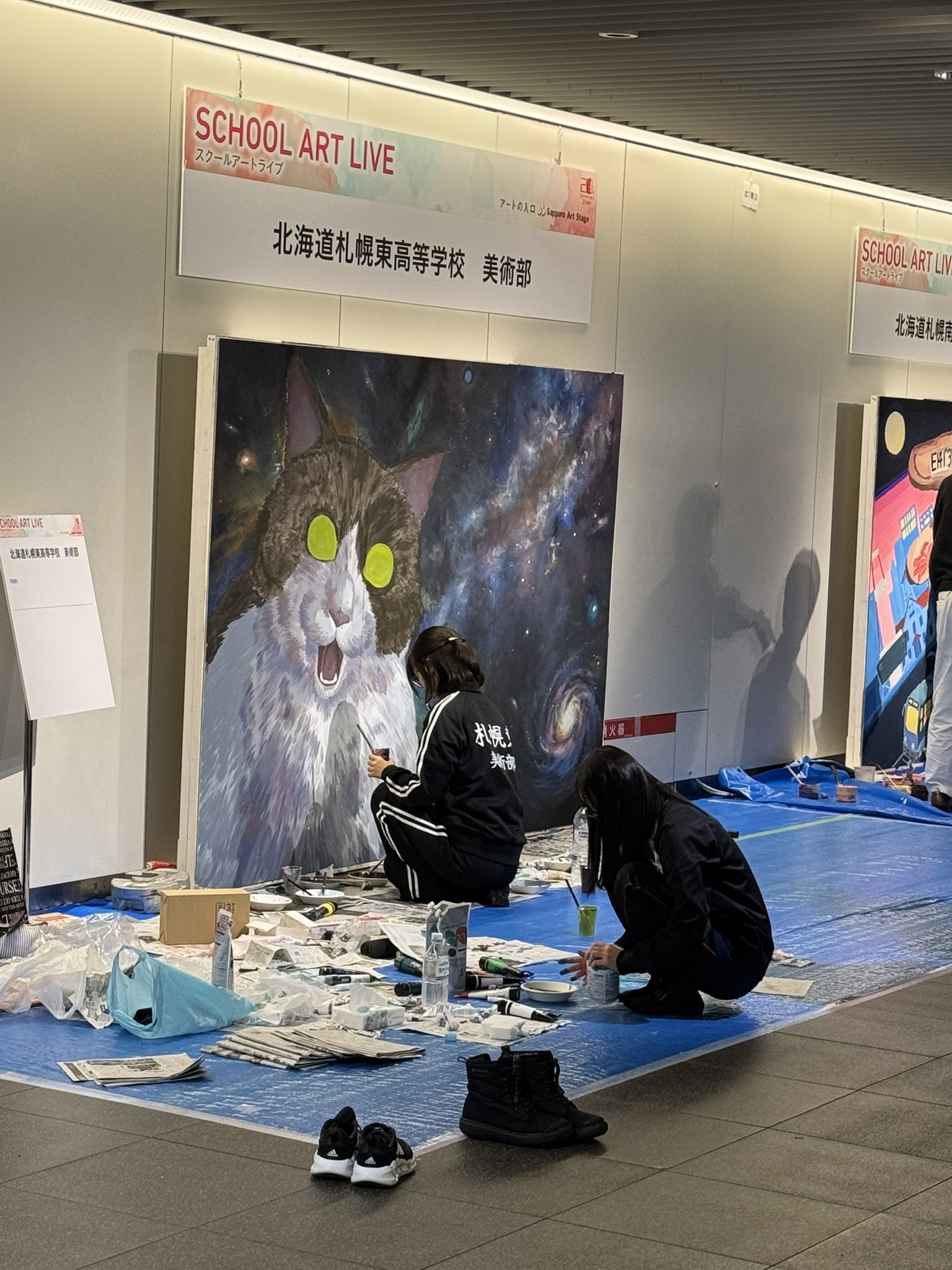 札幌駅まで地下道経由で移動してたら宇宙ネコが飾ってあって草 https://t.co/vJzBxmBYzP
