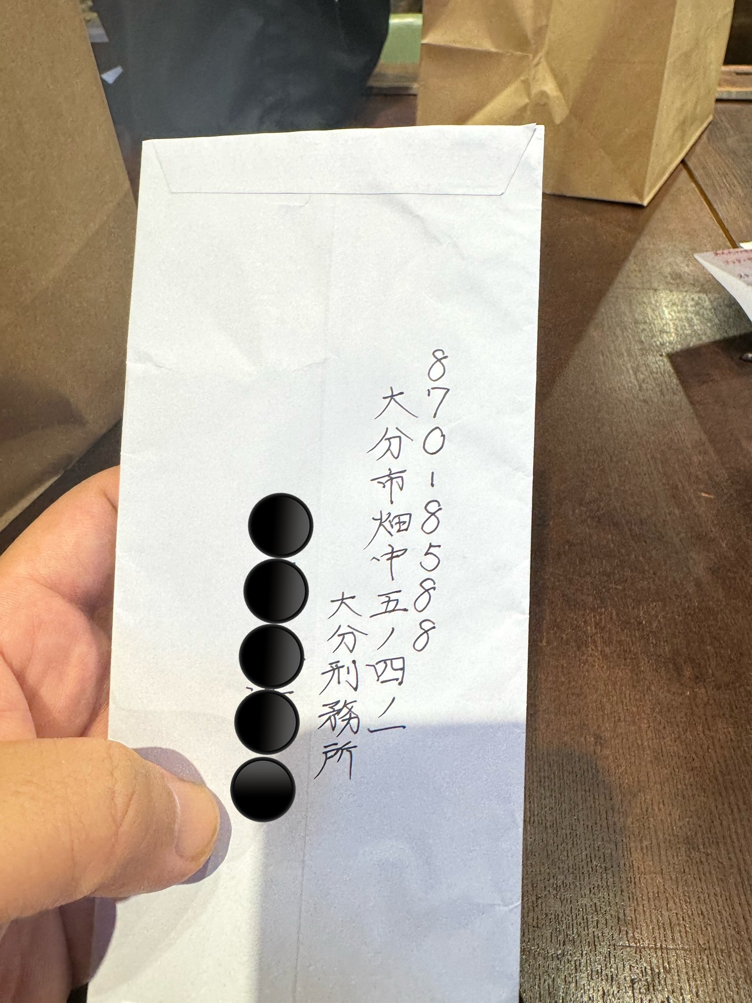以前テレビか本か何かで、受刑者を取材するライターみたいな人が「彼らの共通点は、切手を細かく分けて数枚に貼ることと、『様』の字に線を入れたり癖があったりする」と言っていたの思い出してやや震えている。